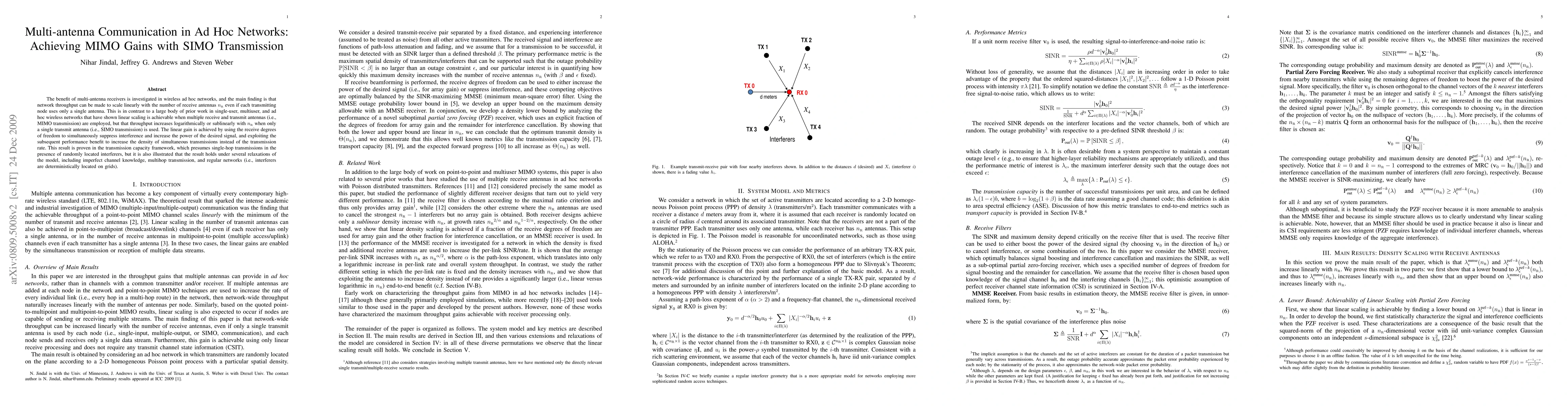 This paper investigates multi-antenna receivers in ad hoc networks, demonstrating that network throughput can scale linearly with the number of receive antennas even with single-antenna transmitters. This linear gain is achieved through the use of receive degrees of freedom to manage interference and enhance the desired signal, allowing for more simultaneous transmissions.