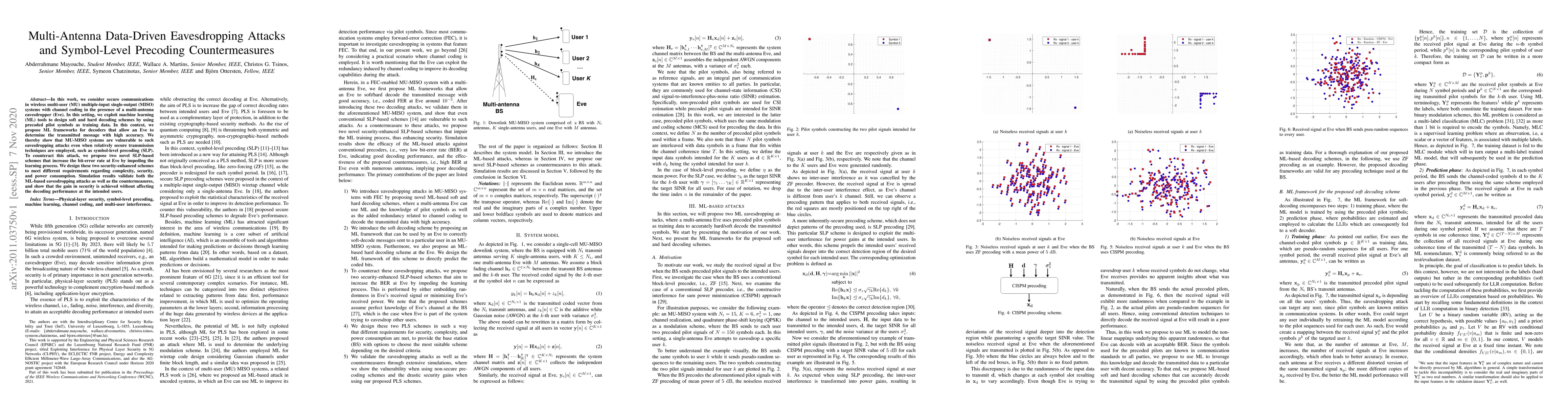 This paper explores vulnerabilities in secure multi-user MISO systems using machine learning for eavesdropping attacks, demonstrating that symbol-level precoding is not immune. It proposes two novel precoding schemes to enhance security, balancing complexity, security, and power consumption, while maintaining user decoding performance.