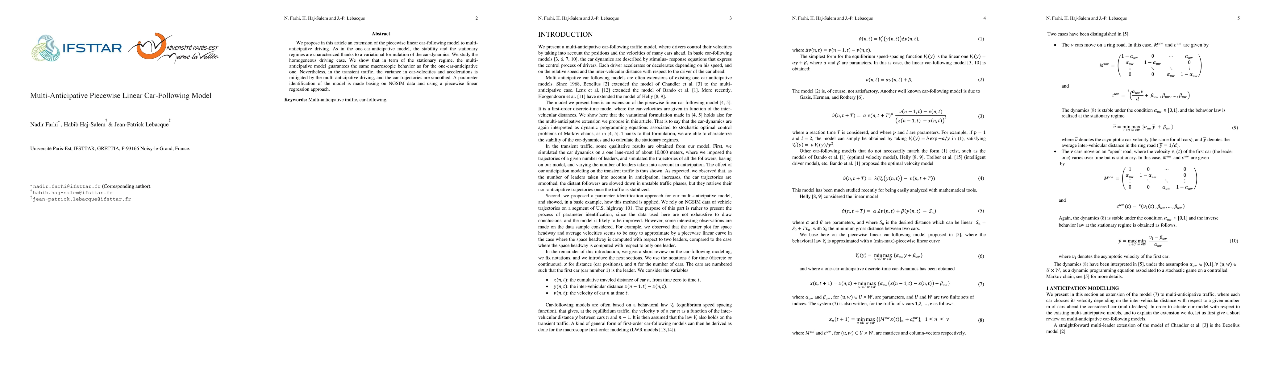 This paper extends the piecewise linear car-following model to incorporate multi-anticipative driving, showing that it maintains the same macroscopic behavior as the one-car-anticipative model in stationary regimes. The multi-anticipative approach smooths car trajectories and reduces variance in velocities and accelerations during transient traffic, validated through parameter identification using NGSIM data.