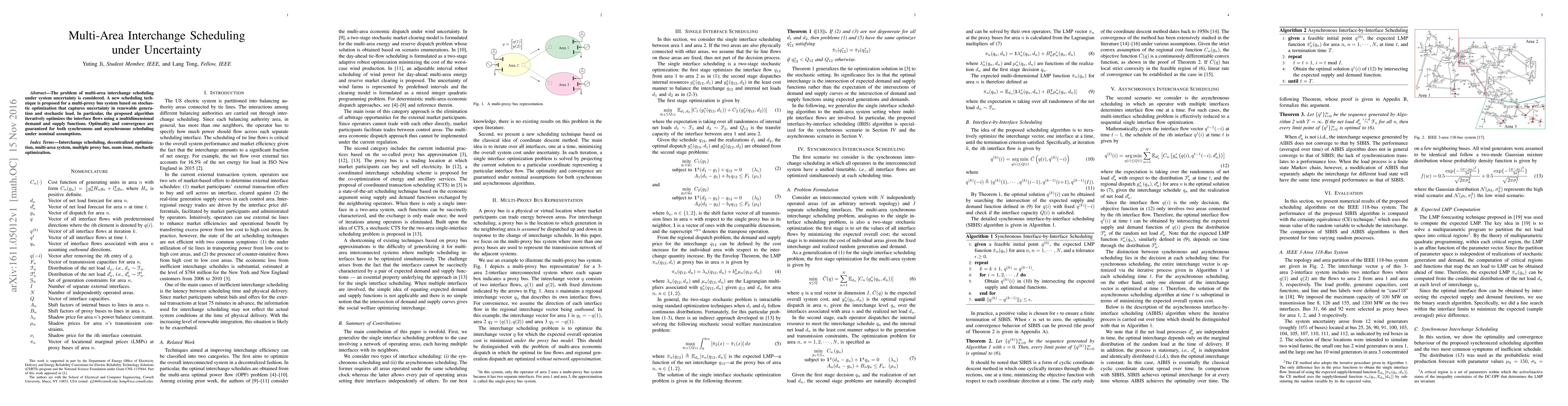 A new scheduling technique for multi-area interchange in power grids is proposed, using stochastic optimization to handle uncertainty in renewable energy and load fluctuations. The algorithm ensures optimality and convergence under nominal assumptions for both synchronous and asynchronous scheduling scenarios.