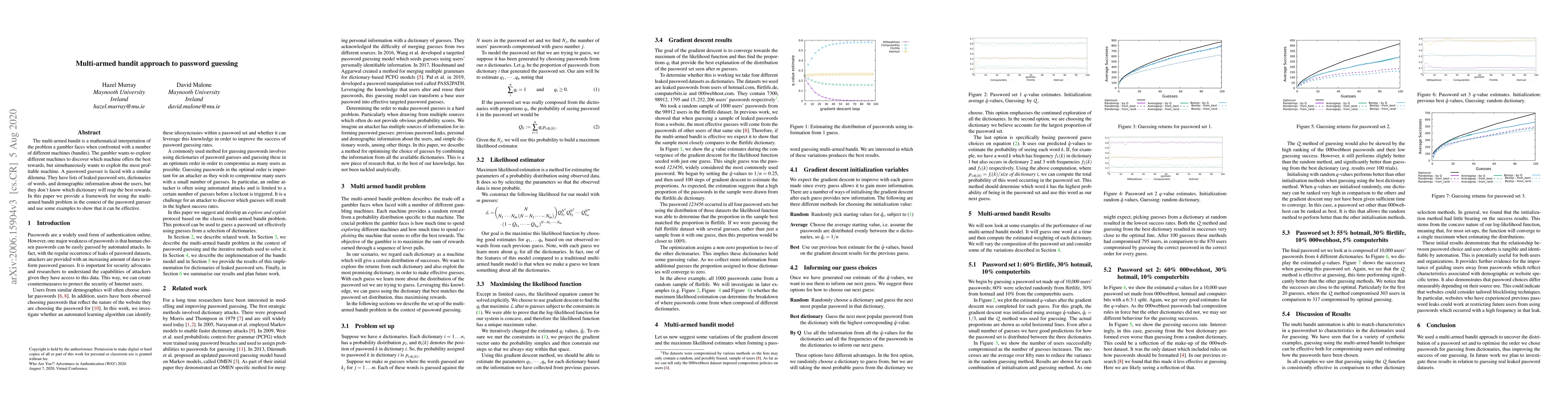 This paper proposes a multi-armed bandit framework to optimize password guessing strategies, balancing exploration of various password dictionaries against exploitation of the most effective ones. The approach demonstrates effectiveness through practical examples.