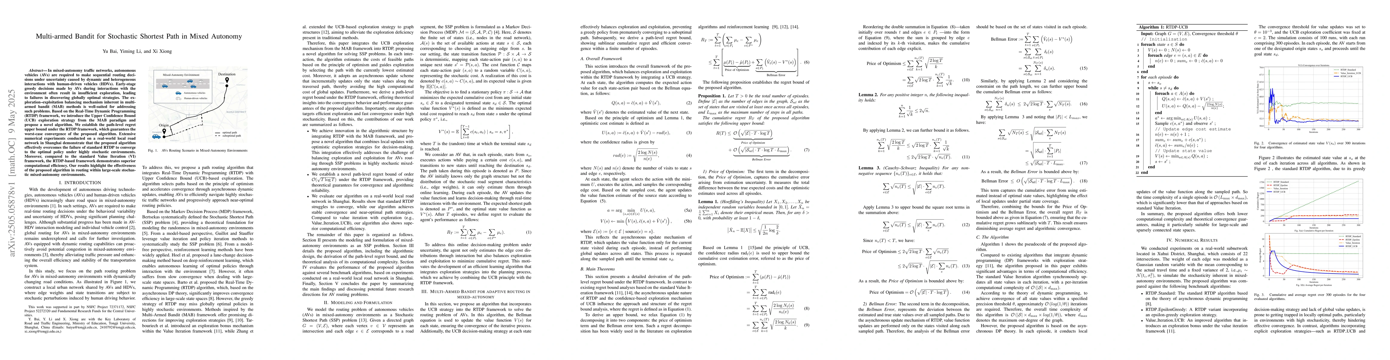 This work distinguishes itself by applying MAB-based exploration strategies within the RTDP framework, addressing a critical gap in existing literature focused on AV routing in uncertain, mixed-autonomy environments.