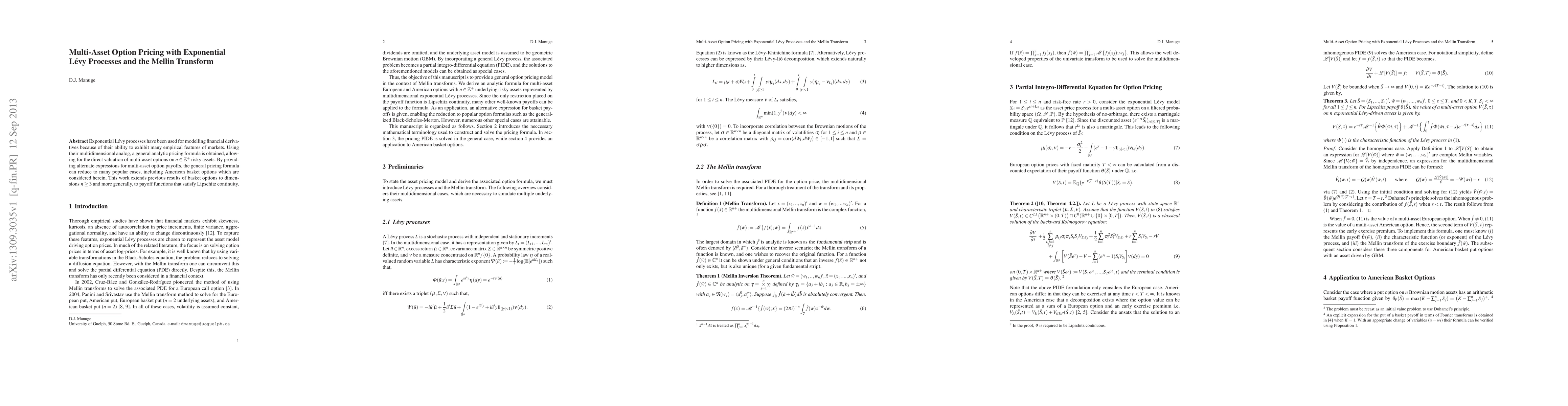 Exponential L\'evy processes have been used for modelling financial derivatives because of their ability to exhibit many empirical features of markets. Using their multidimensional analogue, a general analytic pricing formula is obtained, allowing for the direct valuation of multi-asset options on $n \in \z^+$ risky assets. By providing alternate expressions for multi-asset option payoffs, the general pricing formula can reduce to many popular cases, including American basket options which are considered herein. This work extends previous results of basket options to dimensions $n \geq 3$ and more generally, to payoff functions that satisfy Lipschitz continuity.