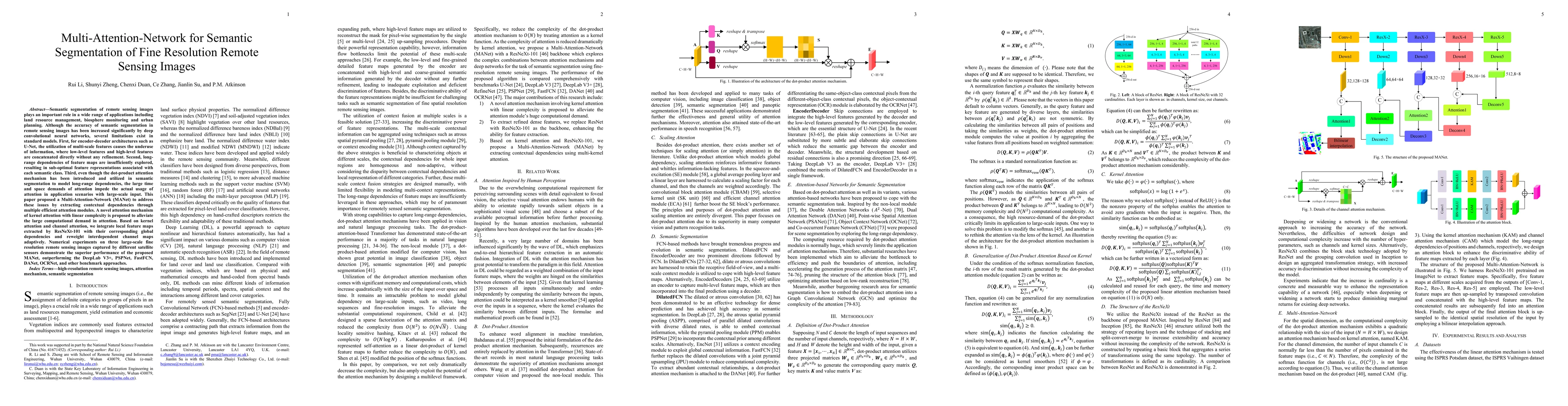 This paper proposes a Multi-Attention-Network (MANet) to enhance semantic segmentation of fine resolution remote sensing images by addressing limitations of existing encoder-decoder models. It introduces efficient attention modules, including kernel attention, to extract contextual dependencies and improve feature representation.