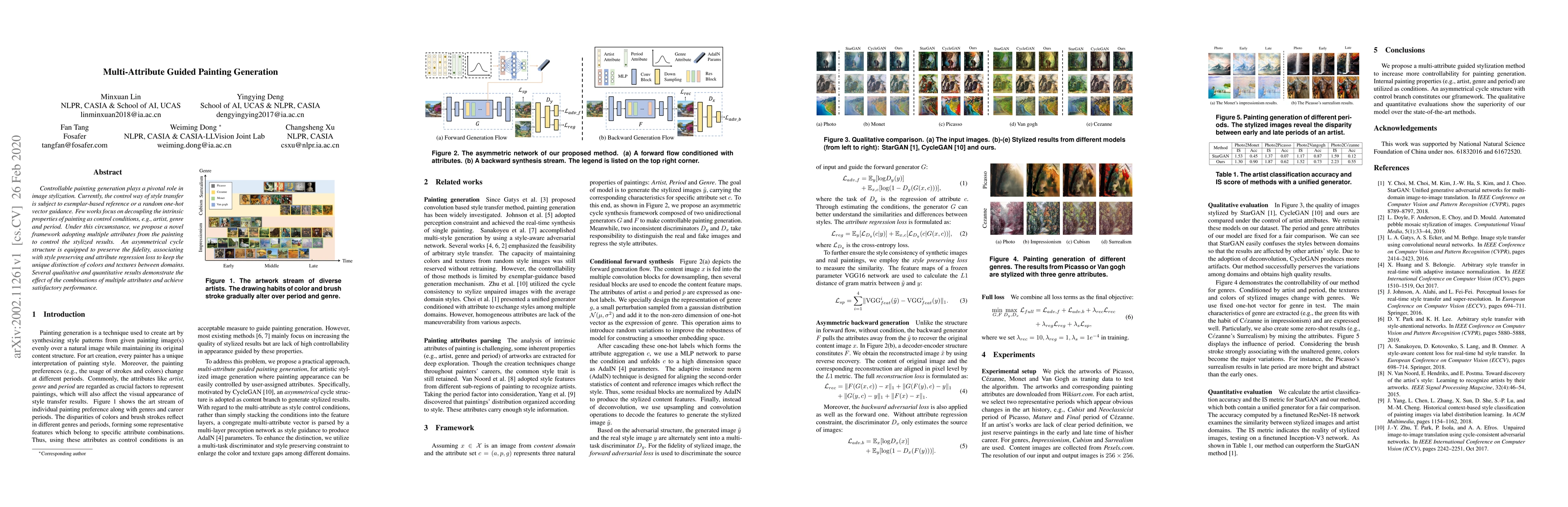 This paper proposes a framework for controllable painting generation by using multiple attributes like artist, genre, and period to guide stylization, employing an asymmetrical cycle structure and style preserving loss for better fidelity and attribute regression loss for unique color and texture distinction. The method shows promising results in both qualitative and quantitative evaluations.
