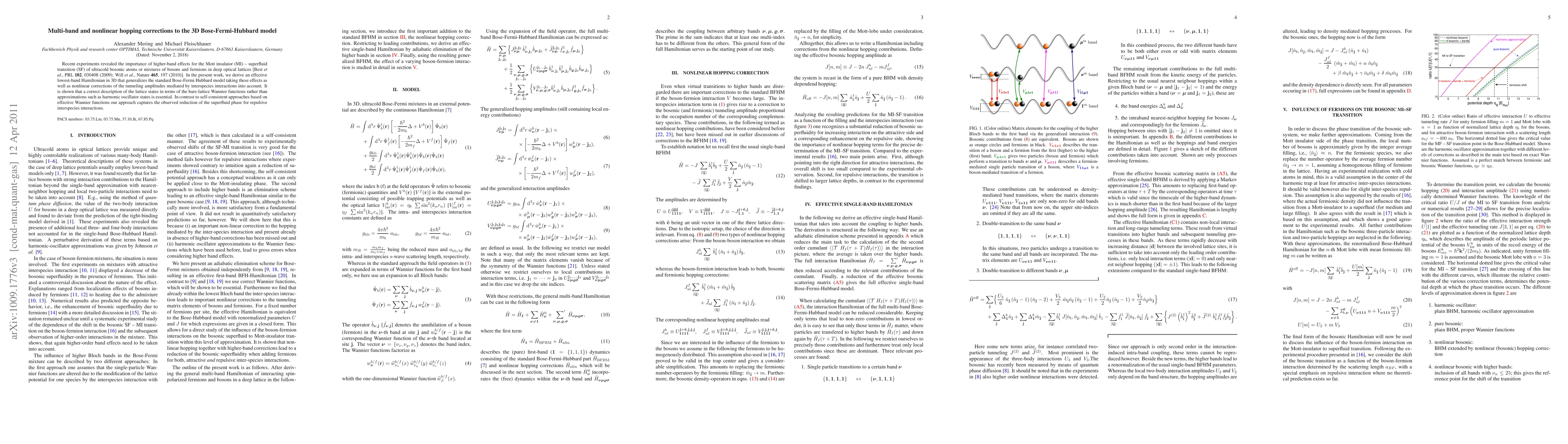 Researchers developed an effective 3D Hamiltonian that includes multi-band hopping corrections and nonlinear tunneling effects to accurately describe the Mott insulator-superfluid transition in ultracold atoms. The model provides a quantitative explanation for the observed reduction of the superfluid phase with repulsive interspecies interactions.