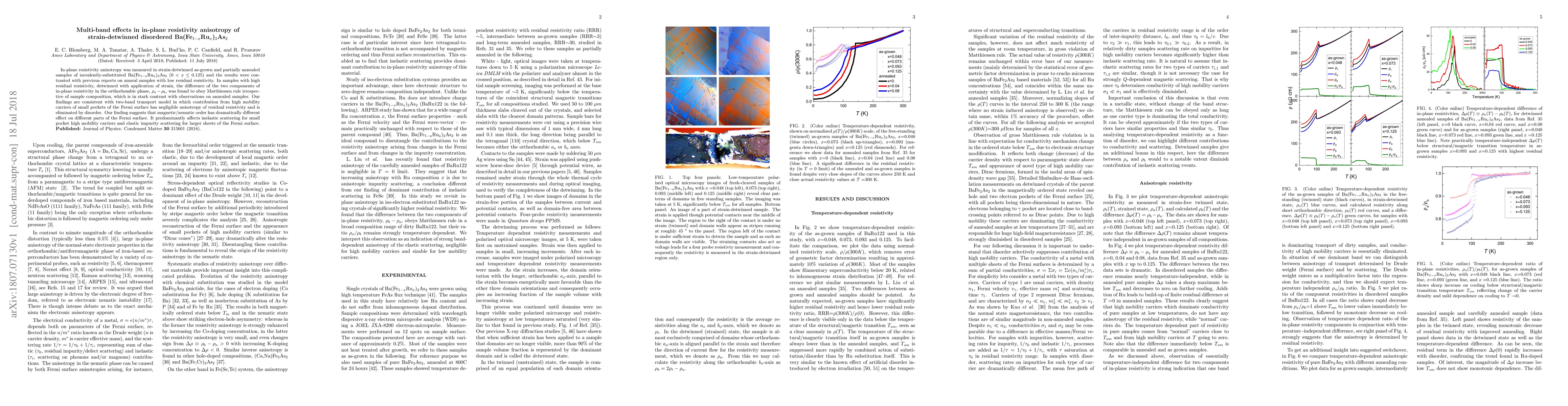 Research on a specific compound found that strain-detwinned samples exhibit anisotropy in resistivity obeying Matthiessen rule, differing from previous reports on annealed samples, suggesting different effects of magnetic/nematic order on the Fermi surface.