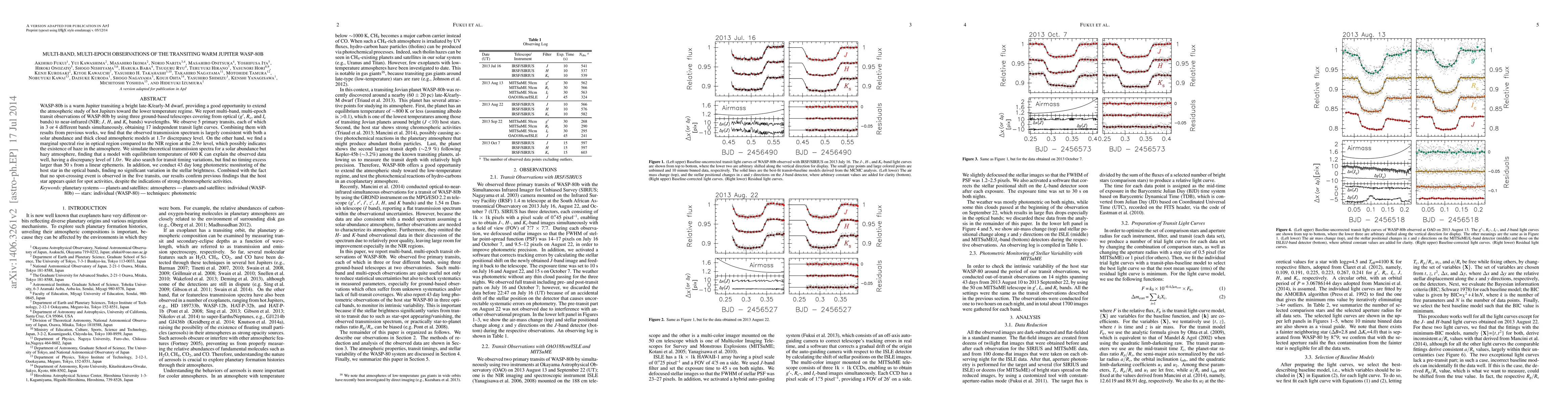 This study reports multi-band, multi-epoch transit observations of the warm Jupiter WASP-80b, revealing a transmission spectrum consistent with solar abundance and thick cloud models, while suggesting the presence of haze in the optical region. No significant transit timing variations or stellar activity were detected.