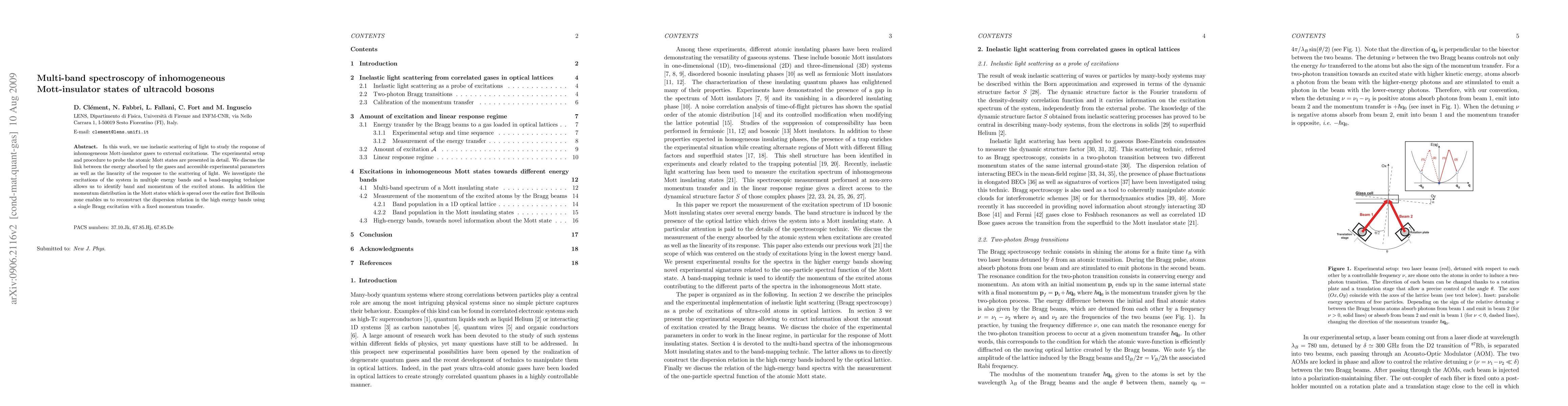In this work, we use inelastic scattering of light to study the response of inhomogeneous Mott-insulator gases to external excitations. The experimental setup and procedure to probe the atomic Mott states are presented in detail. We discuss the link between the energy absorbed by the gases and accessible experimental parameters as well as the linearity of the response to the scattering of light. We investigate the excitations of the system in multiple energy bands and a band-mapping technique allows us to identify band and momentum of the excited atoms. In addition the momentum distribution in the Mott states which is spread over the entire first Brillouin zone enables us to reconstruct the dispersion relation in the high energy bands using a single Bragg excitation with a fixed momentum transfer.