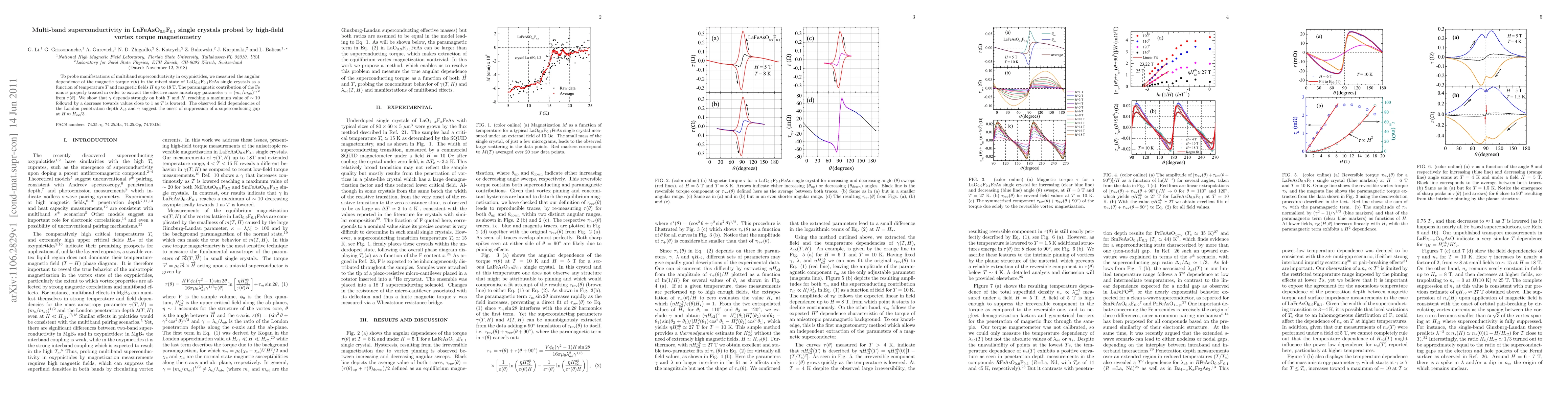This study investigates multi-band superconductivity in LaFeAsO_{0.9}F_{0.1} using high-field vortex torque magnetometry, revealing strong temperature and magnetic field dependence of effective mass anisotropy. The results suggest suppression of a superconducting gap at one-third of the critical magnetic field.