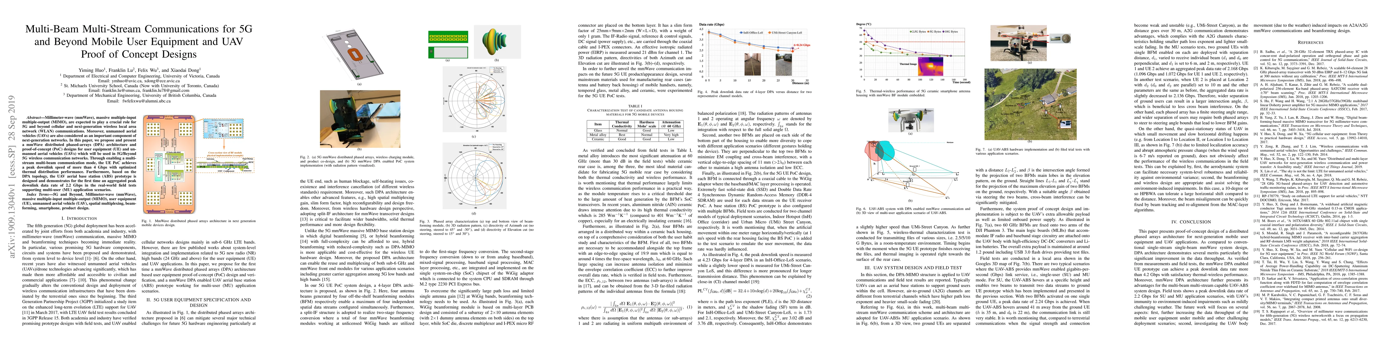 This paper proposes a millimeter-wave distributed phased-array architecture for 5G and beyond communications, presenting proof-of-concept designs for both mobile user equipment and UAVs. The proposed designs enable multi-stream multi-beam communication, achieving peak downlink speeds of over 4 Gbps for UE and 2.2 Gbps for UAVs in real-world tests.