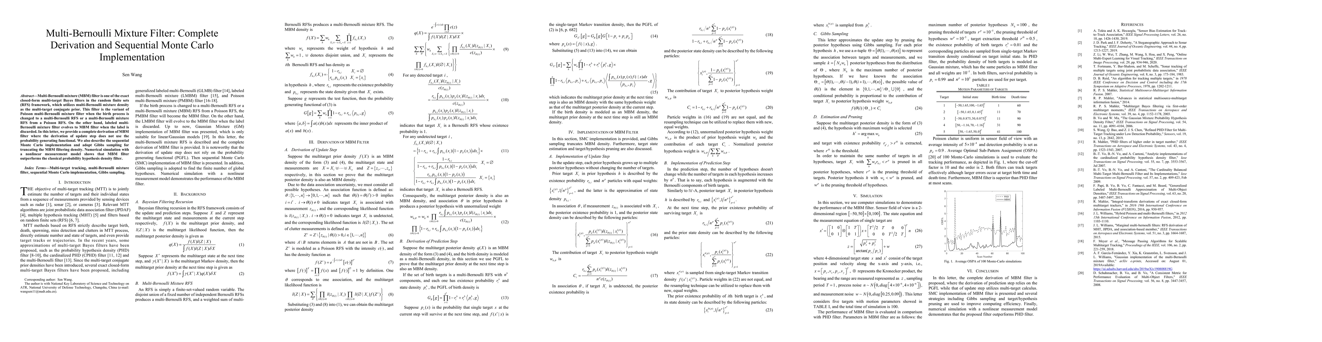 This paper presents a complete derivation of the Multi-Bernoulli Mixture (MBM) filter, a multi-target Bayes filter within the random finite sets framework, without using the probability generating functional. It also details a sequential Monte Carlo implementation using Gibbs sampling for density truncation, demonstrating superior performance over the classical probability hypothesis density filter in numerical simulations.