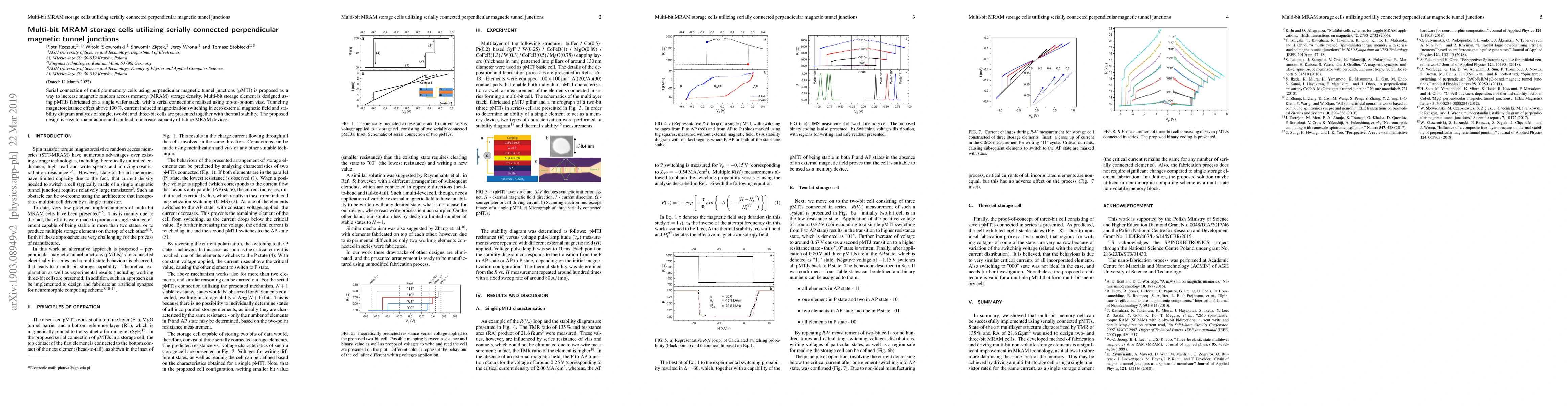 This paper proposes a method to enhance MRAM storage density by serially connecting multiple memory cells using perpendicular magnetic tunnel junctions (pMTJs). The design features multi-bit storage elements with high tunneling magnetoresistance and current-induced magnetization switching, offering a scalable and manufacturable solution for future MRAM devices.