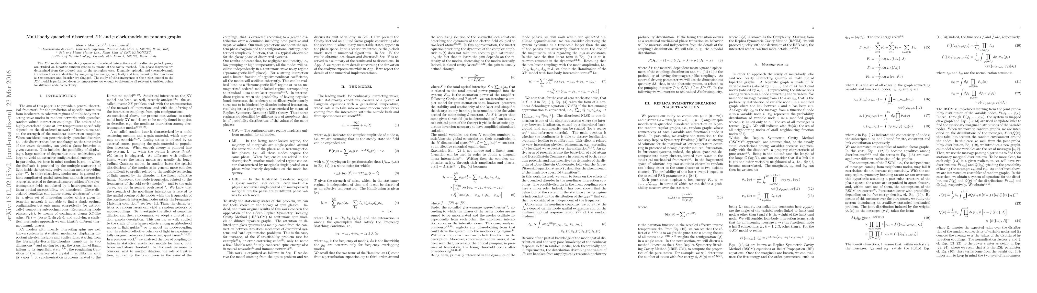 This research investigates the $XY$ model with four-body interactions and its $p$-clock approximation on random bipartite graphs, mapping out phase diagrams and transition lines through the cavity method. The study determines convergence of the $p$-clock model to the $XY$ model and identifies dynamic, spinodal, and thermodynamic transitions.
