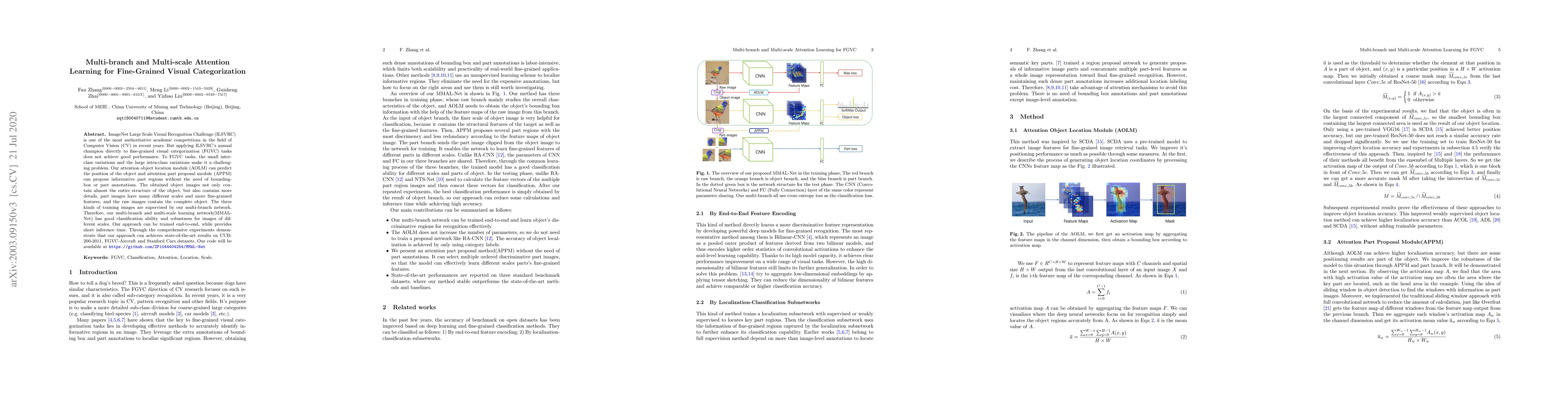 This paper proposes a multi-branch and multi-scale attention learning network (MMAL-Net) for fine-grained visual categorization, which uses an attention object location module and an attention part proposal module to extract detailed object and part features. The network achieves state-of-the-art results on several fine-grained datasets, demonstrating its effectiveness and robustness.