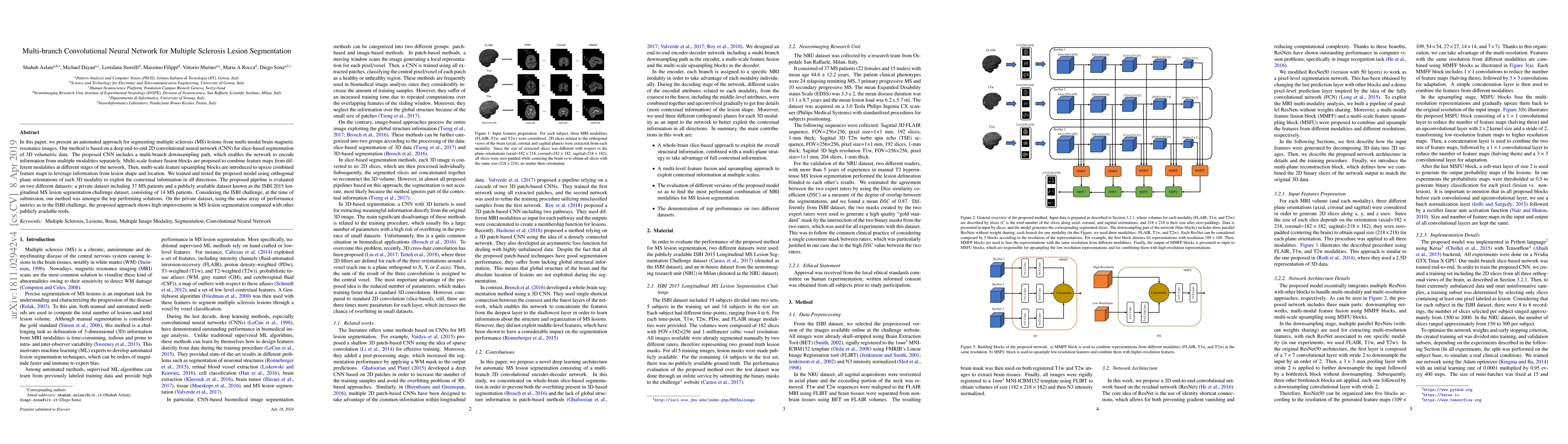 This paper introduces a multi-branch convolutional neural network for segmenting MS lesions from multi-modal brain MRIs, employing multi-scale feature fusion and upsampling blocks to enhance segmentation accuracy. The method was evaluated on two datasets, showing top performance in the ISBI 2015 challenge and significant improvements over other tools on a private dataset.