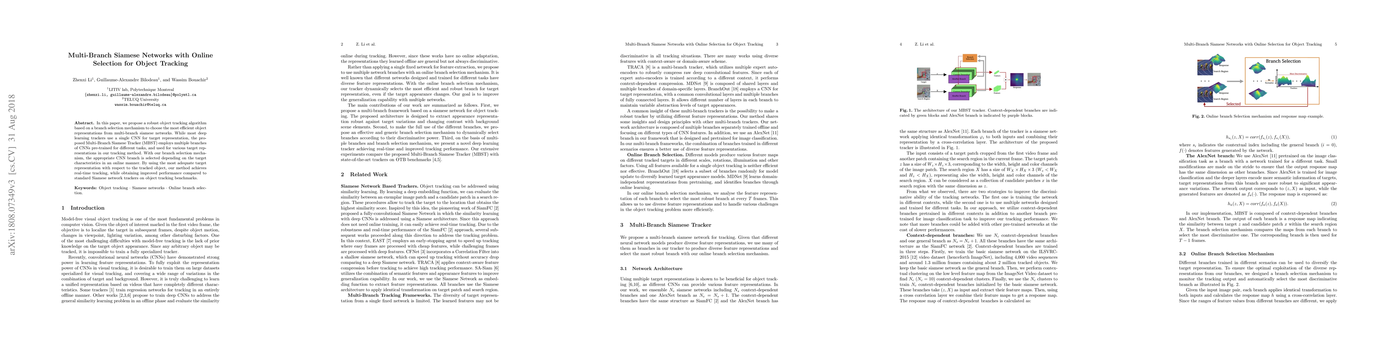 This paper introduces a Multi-Branch Siamese Tracker (MBST) that leverages multiple pre-trained CNN branches for diverse target representations. The method dynamically selects the most suitable branch online based on target characteristics, achieving real-time tracking with enhanced performance over traditional Siamese network trackers.