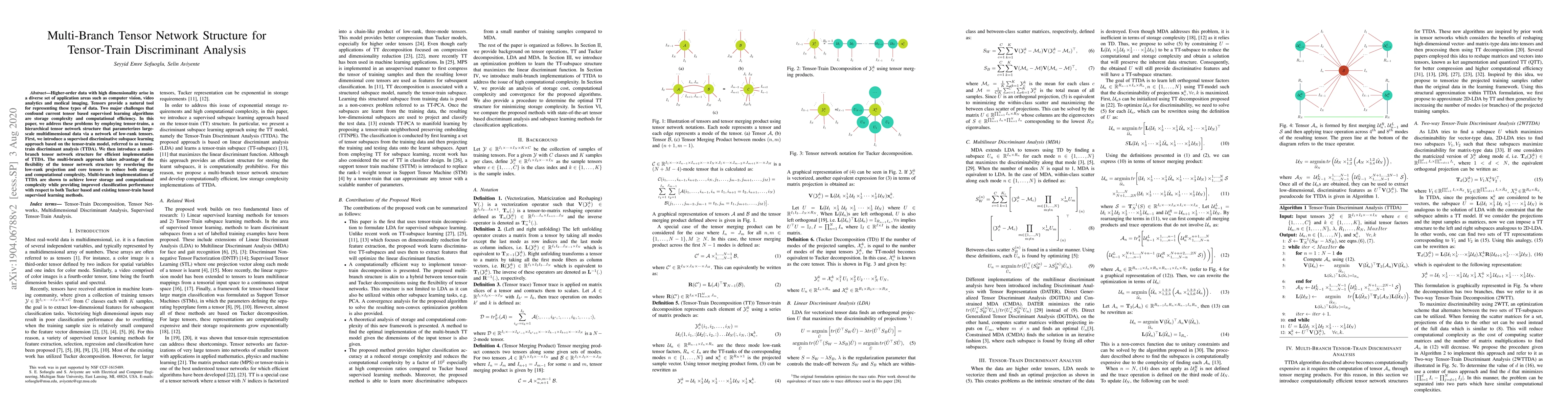 This paper proposes a supervised learning method for tensor classification using the tensor-train model, introducing a multi-branch tensor network structure for efficient tensor-train discriminant analysis (TTDA). The approach is evaluated on image and video classification tasks, demonstrating improved computational efficiency and accuracy compared to existing methods.