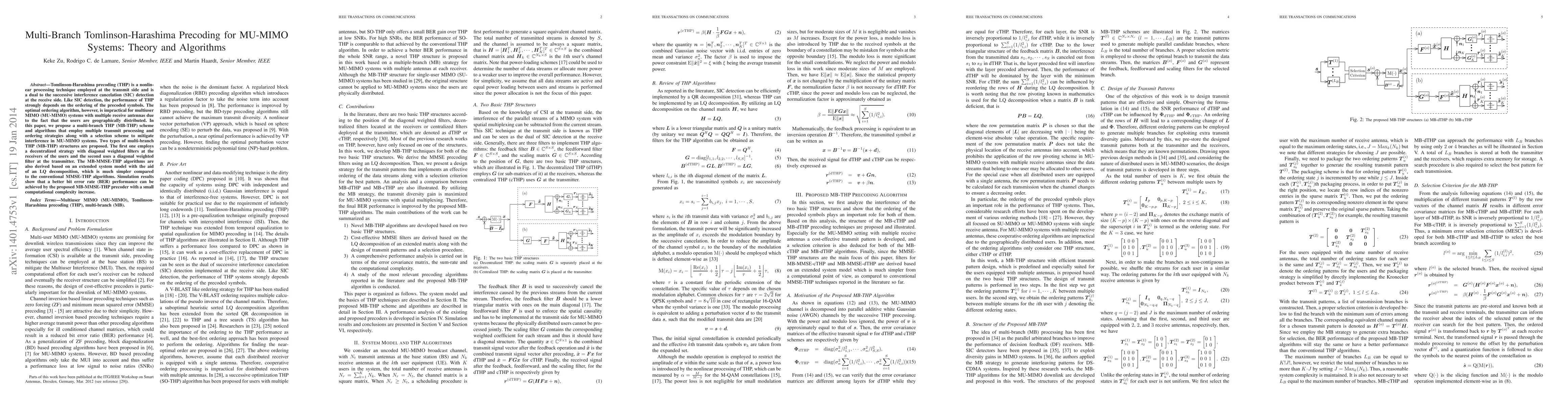 Tomlinson-Harashima precoding (THP) is a nonlinear processing technique employed at the transmit side and is a dual to the successive interference cancelation (SIC) detection at the receive side. Like SIC detection, the performance of THP strongly depends on the ordering of the precoded symbols. The optimal ordering algorithm, however, is impractical for multiuser MIMO (MU-MIMO) systems with multiple receive antennas due to the fact that the users are geographically distributed. In this paper, we propose a multi-branch THP (MB-THP) scheme and algorithms that employ multiple transmit processing and ordering strategies along with a selection scheme to mitigate interference in MU-MIMO systems. Two types of multi-branch THP (MB-THP) structures are proposed. The first one employs a decentralized strategy with diagonal weighted filters at the receivers of the users and the second uses a diagonal weighted filter at the transmitter. The MB-MMSE-THP algorithms are also derived based on an extended system model with the aid of an LQ decomposition, which is much simpler compared to the conventional MMSE-THP algorithms. Simulation results show that a better bit error rate (BER) performance can be achieved by the proposed MB-MMSE-THP precoder with a small computational complexity increase.