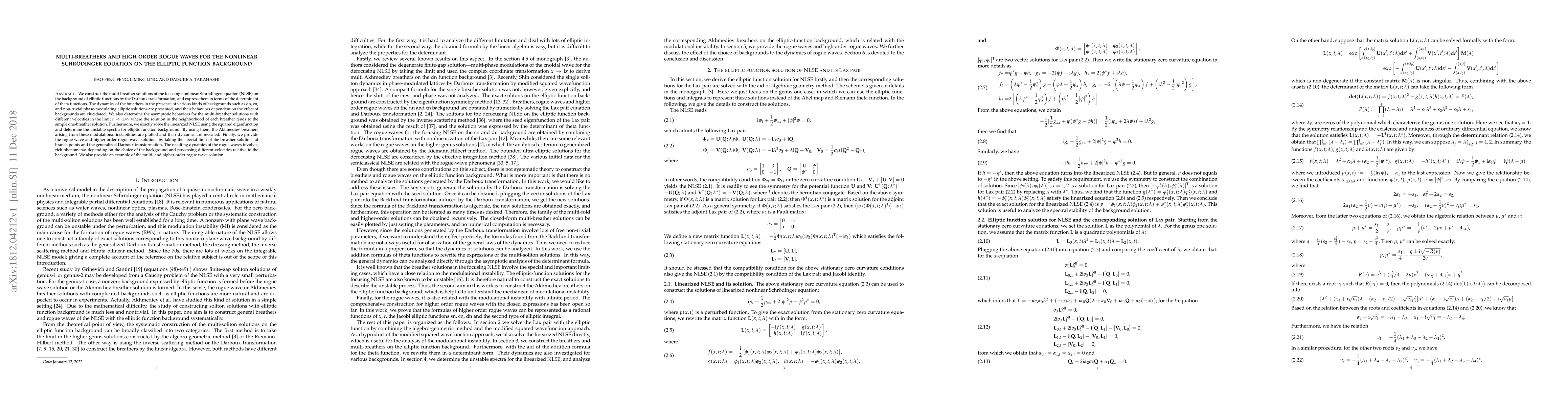 We construct the multi-breather solutions of the focusing nonlinear Schr\"odinger equation (NLSE) on the background of elliptic functions by the Darboux transformation, and express them in terms of the determinant of theta functions. The dynamics of the breathers in the presence of various kinds of backgrounds such as dn, cn, and non-trivial phase-modulating elliptic solutions are presented, and their behaviors dependent on the effect of backgrounds are elucidated. We also determine the asymptotic behaviors for the multi-breather solutions with different velocities in the limit $t\to\pm\infty$, where the solution in the neighborhood of each breather tends to the simple one-breather solution. Furthermore, we exactly solve the linearized NLSE using the squared eigenfunction and determine the unstable spectra for elliptic function background. By using them, the Akhmediev breathers arising from these modulational instabilities are plotted and their dynamics are revealed. Finally, we provide the rogue-wave and higher-order rogue-wave solutions by taking the special limit of the breather solutions at branch points and the generalized Darboux transformation. The resulting dynamics of the rogue waves involves rich phenomena: depending on the choice of the background and possessing different velocities relative to the background. We also provide an example of the multi- and higher-order rogue wave solution.
