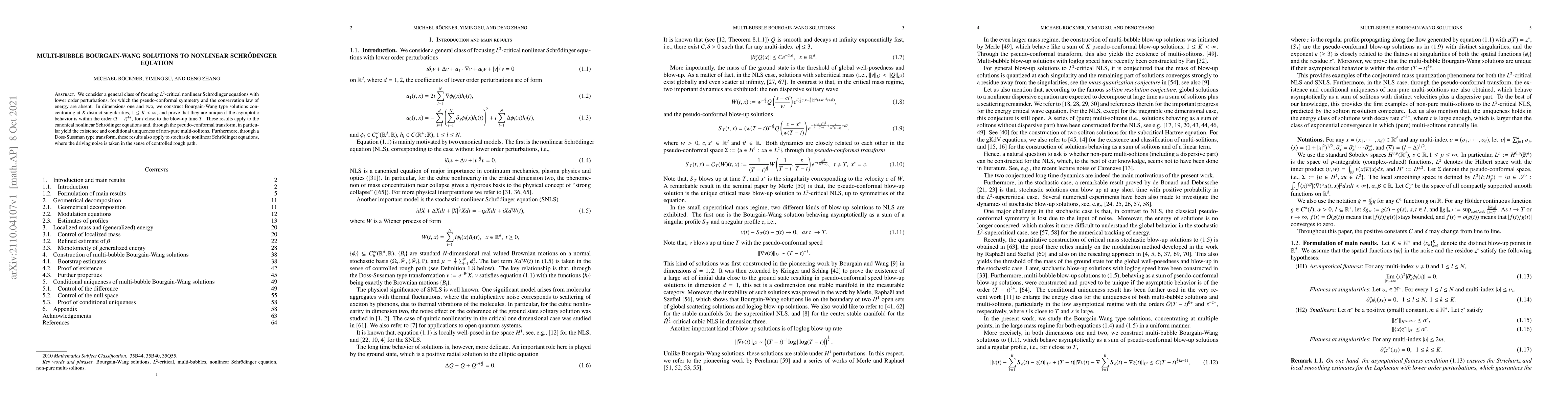 This paper constructs Bourgain-Wang type solutions for focusing $L^2$-critical nonlinear Schrödinger equations with lower order perturbations, showing uniqueness in dimensions one and two for solutions concentrating at $K$ distinct singularities. The results extend to non-pure multi-solitons and stochastic nonlinear Schrödinger equations with controlled rough path noise.
