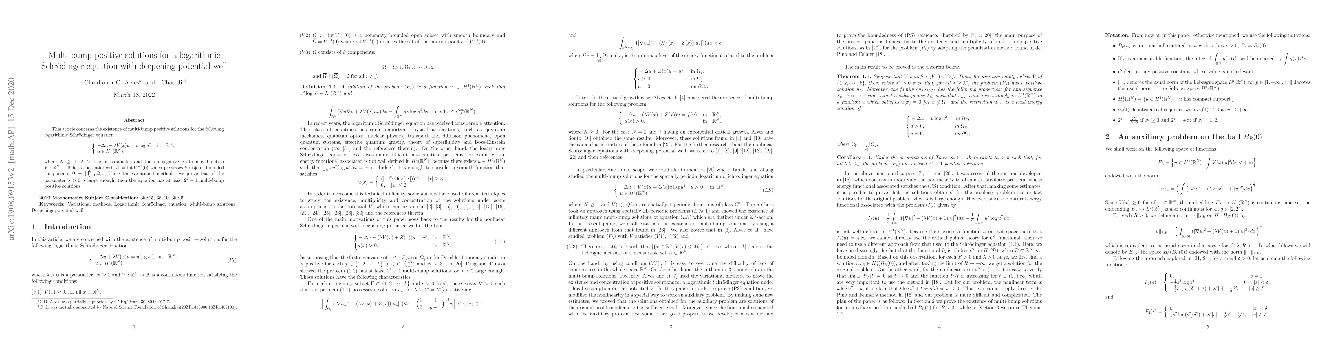 A logarithmic Schr"{o}dinger equation with a deepening potential well has at least 2^k - 1 multi-bump positive solutions for large enough parameter lambda.
