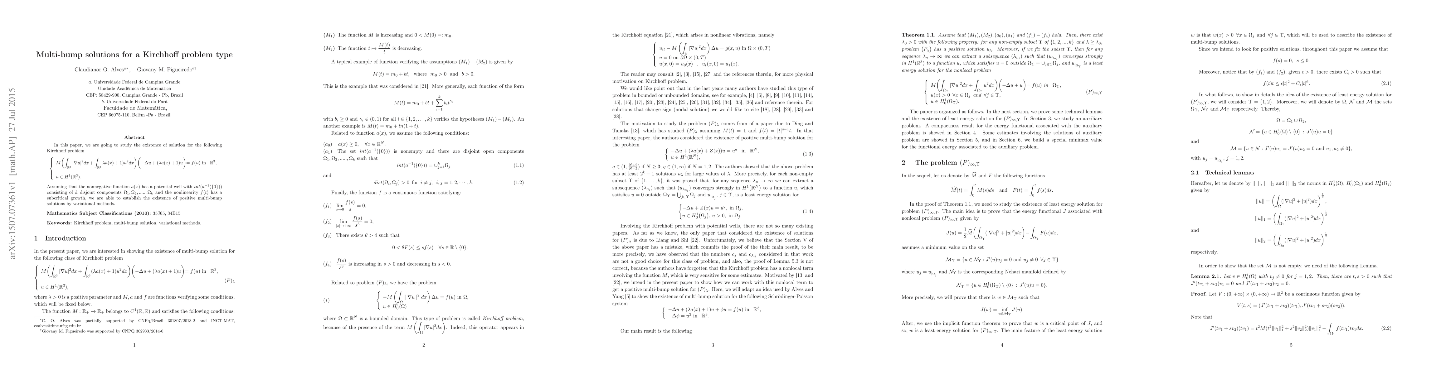 This research paper establishes the existence of positive multi-bump solutions for a Kirchhoff problem type under specific conditions, including a potential well and subcritical growth in nonlinearity, using variational methods.