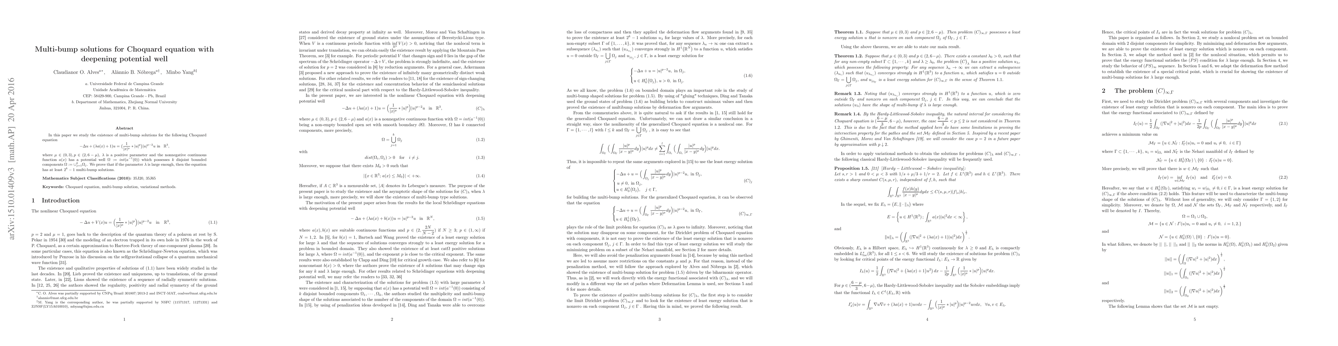 The Choquard equation with a deepening potential well has at least $2^{k}-1$ multi-bump solutions for large values of the positive parameter $ extlambda$, where k is the number of disjoint bounded components in the potential well.
