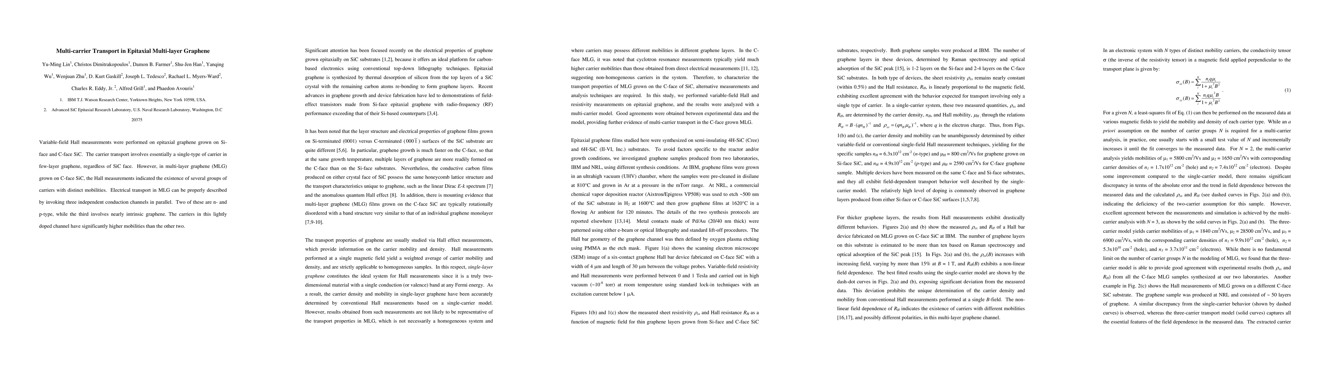 This study reveals distinct carrier transport mechanisms in multi-layer graphene (MLG) on C-face SiC, showing three parallel conduction channels: two n- and p-type and one nearly intrinsic with much higher mobility. Single-type carrier transport is observed in few-layer graphene regardless of SiC face.