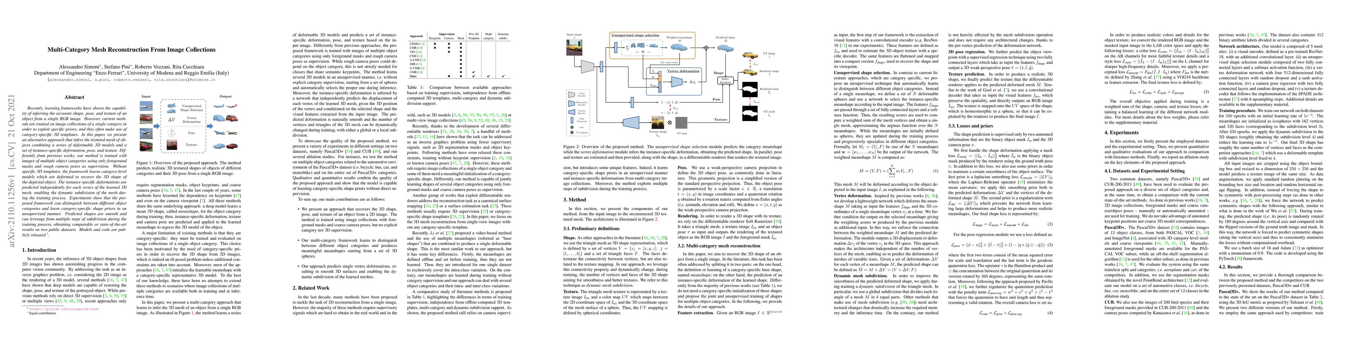 Recently, learning frameworks have shown the capability of inferring the accurate shape, pose, and texture of an object from a single RGB image. However, current methods are trained on image collections of a single category in order to exploit specific priors, and they often make use of category-specific 3D templates. In this paper, we present an alternative approach that infers the textured mesh of objects combining a series of deformable 3D models and a set of instance-specific deformation, pose, and texture. Differently from previous works, our method is trained with images of multiple object categories using only foreground masks and rough camera poses as supervision. Without specific 3D templates, the framework learns category-level models which are deformed to recover the 3D shape of the depicted object. The instance-specific deformations are predicted independently for each vertex of the learned 3D mesh, enabling the dynamic subdivision of the mesh during the training process. Experiments show that the proposed framework can distinguish between different object categories and learn category-specific shape priors in an unsupervised manner. Predicted shapes are smooth and can leverage from multiple steps of subdivision during the training process, obtaining comparable or state-of-the-art results on two public datasets. Models and code are publicly released.