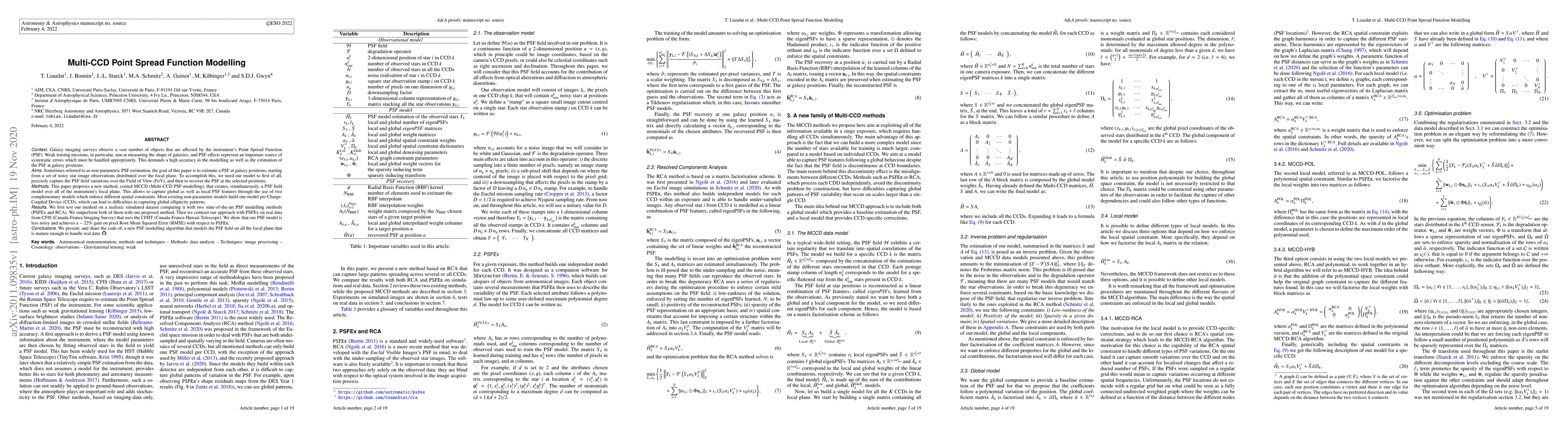 This paper introduces a new method, MCCD, for multi-CCD PSF modelling to accurately capture and estimate the Point Spread Function (PSF) over an instrument's entire focal plane, outperforming existing methods in both simulated and real data tests. The proposed method effectively reduces noise and improves PSF estimation accuracy.