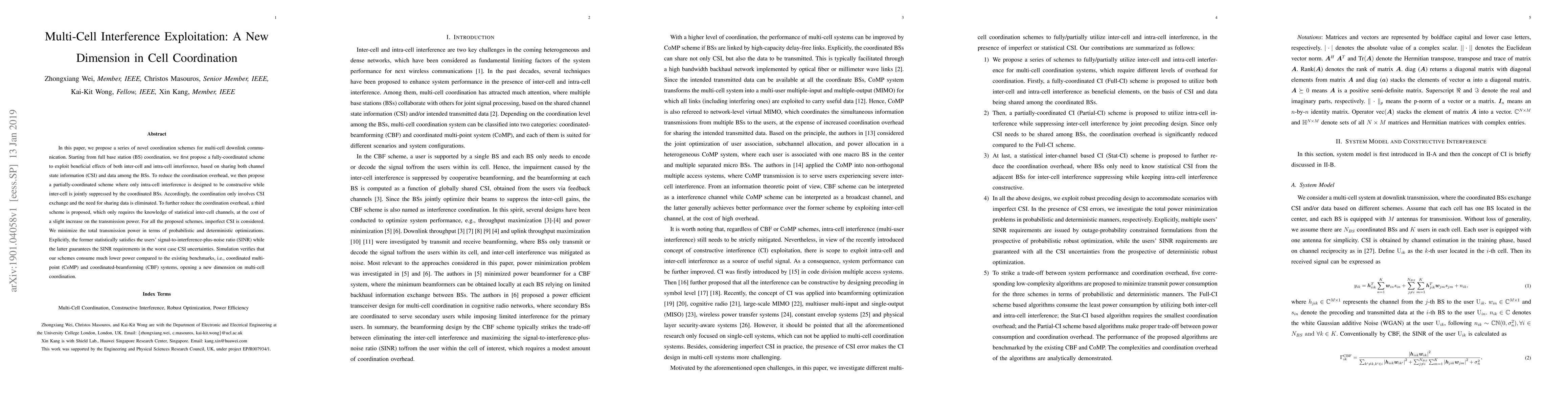 In this paper, we propose a series of novel coordination schemes for multi-cell downlink communication. Starting from full base station (BS) coordination, we first propose a fully-coordinated scheme to exploit beneficial effects of both inter-cell and intra-cell interference, based on sharing both channel state information (CSI) and data among the BSs. To reduce the coordination overhead, we then propose a partially-coordinated scheme where only intra-cell interference is designed to be constructive while inter-cell is jointly suppressed by the coordinated BSs. Accordingly, the coordination only involves CSI exchange and the need for sharing data is eliminated. To further reduce the coordination overhead, a third scheme is proposed, which only requires the knowledge of statistical inter-cell channels, at the cost of a slight increase on the transmission power. For all the proposed schemes, imperfect CSI is considered. We minimize the total transmission power in terms of probabilistic and deterministic optimizations. Explicitly, the former statistically satisfies the users' signal-to-interference-plus-noise ratio (SINR) while the latter guarantees the SINR requirements in the worst case CSI uncertainties. Simulation verifies that our schemes consume much lower power compared to the existing benchmarks, i.e., coordinated multi-point (CoMP) and coordinated-beamforming (CBF) systems, opening a new dimension on multi-cell coordination.