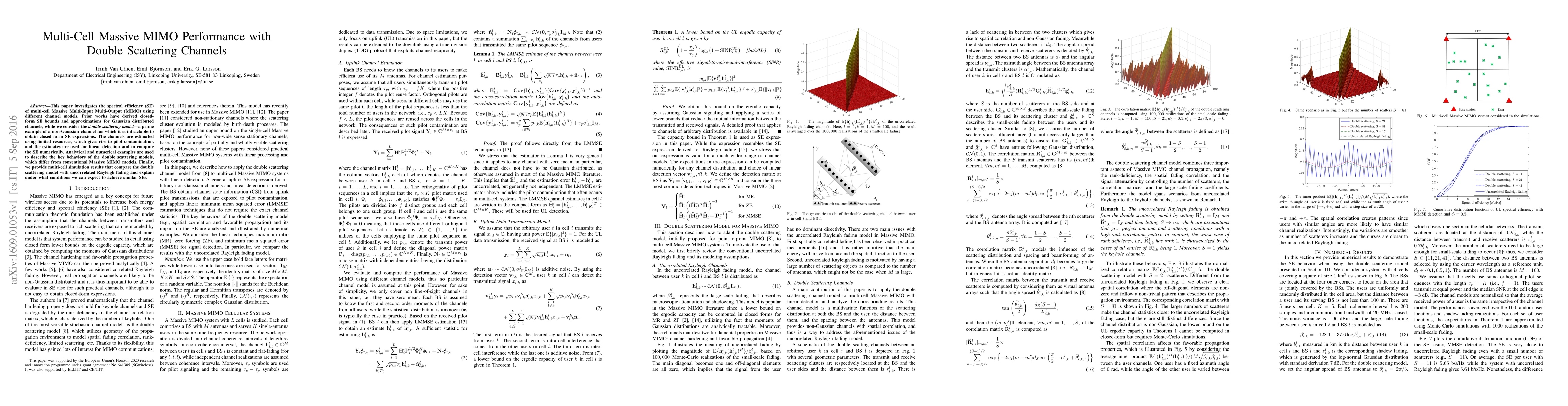 This paper investigates the spectral efficiency (SE) of multi-cell Massive Multi-Input Multi-Output (MIMO) using different channel models. Prior works have derived closed-form SE bounds and approximations for Gaussian distributed channels, while we consider the double scattering model-a prime example of a non-Gaussian channel for which it is intractable to obtain closed form SE expressions. The channels are estimated using limited resources, which gives rise to pilot contamination, and the estimates are used for linear detection and to compute the SE numerically. Analytical and numerical examples are used to describe the key behaviors of the double scattering models, which differ from conventional Massive MIMO models. Finally, we provide multi-cell simulation results that compare the double scattering model with uncorrelated Rayleigh fading and explain under what conditions we can expect to achieve similar SEs.