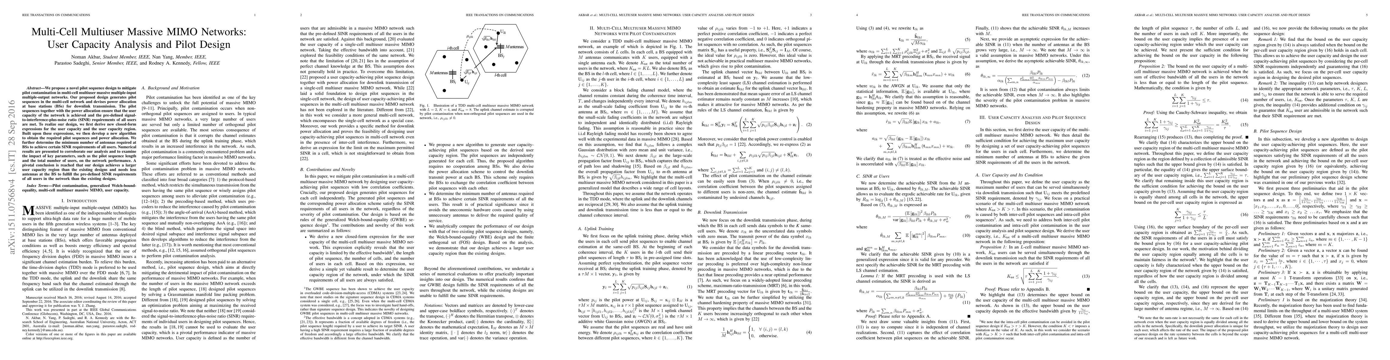 A new pilot sequence design for multi-cell multiuser massive MIMO networks is proposed, achieving a larger user capacity region while requiring fewer antennas to meet pre-defined SINR requirements.