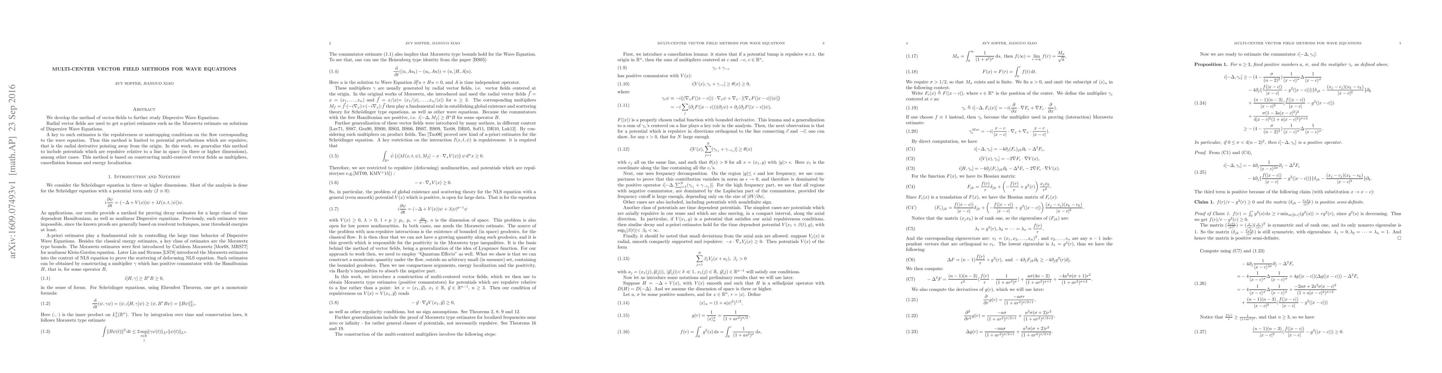We develop the method of vector-fields to further study Dispersive Wave Equations. Radial vector fields are used to get a-priori estimates such as the Morawetz estimate on solutions of Dispersive Wave Equations. A key to such estimates is the repulsiveness or nontrapping conditions on the flow corresponding to the wave equation. Thus this method is limited to potential perturbations which are repulsive, that is the radial derivative pointing away from the origin. In this work, we generalize this method to include potentials which are repulsive relative to a line in space (in three or higher dimensions), among other cases. This method is based on constructing multi-centered vector fields as multipliers, cancellation lemmas and energy localization.