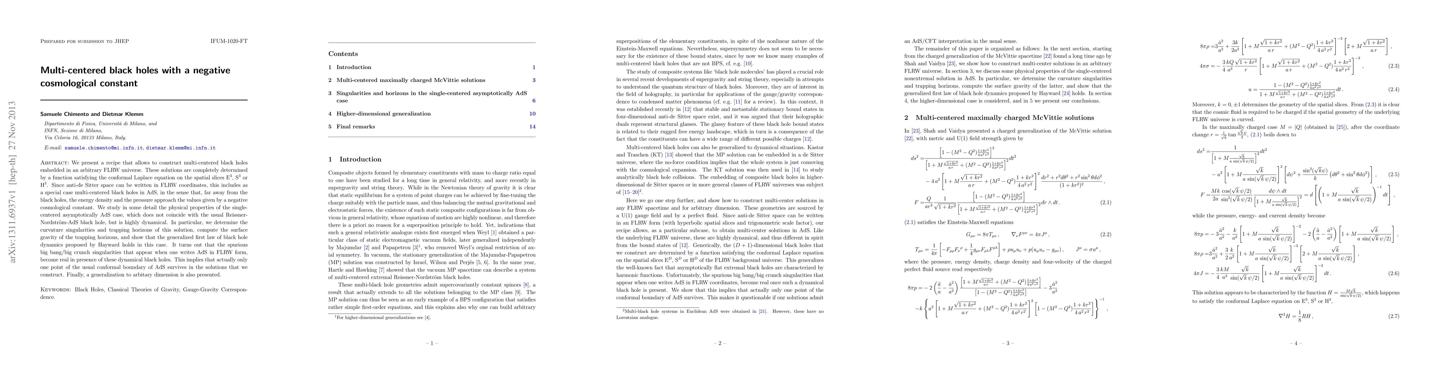 This paper constructs multi-centered black holes in FLRW universes with a negative cosmological constant, including AdS space, and studies their physical properties, revealing dynamical features and real singularities in the presence of these black holes. The generalized first law of black hole dynamics is shown to hold, and the construction method is generalized to arbitrary dimensions.