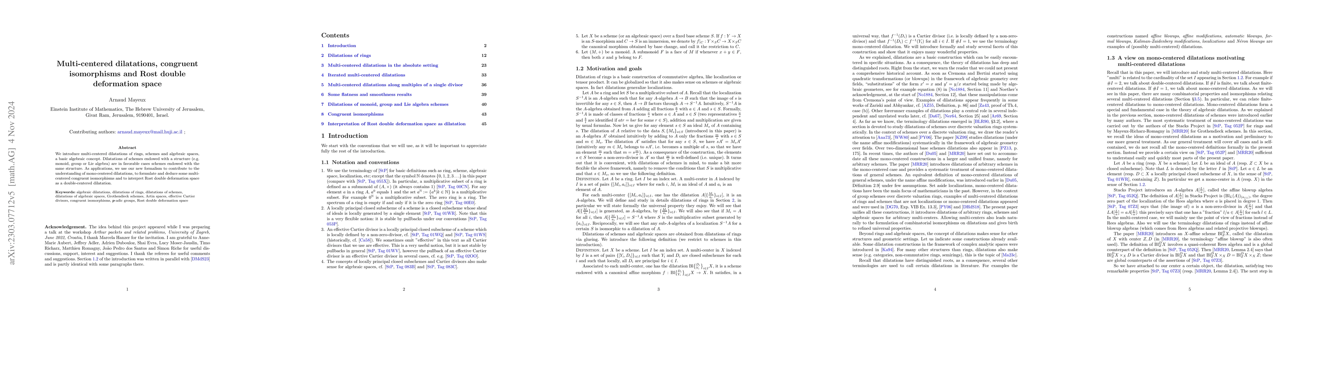 The paper introduces multi-centered dilatations of rings, schemes, and algebraic spaces, extending the concept of dilatations and exploring their properties under various structures such as monoids, groups, and Lie algebras.