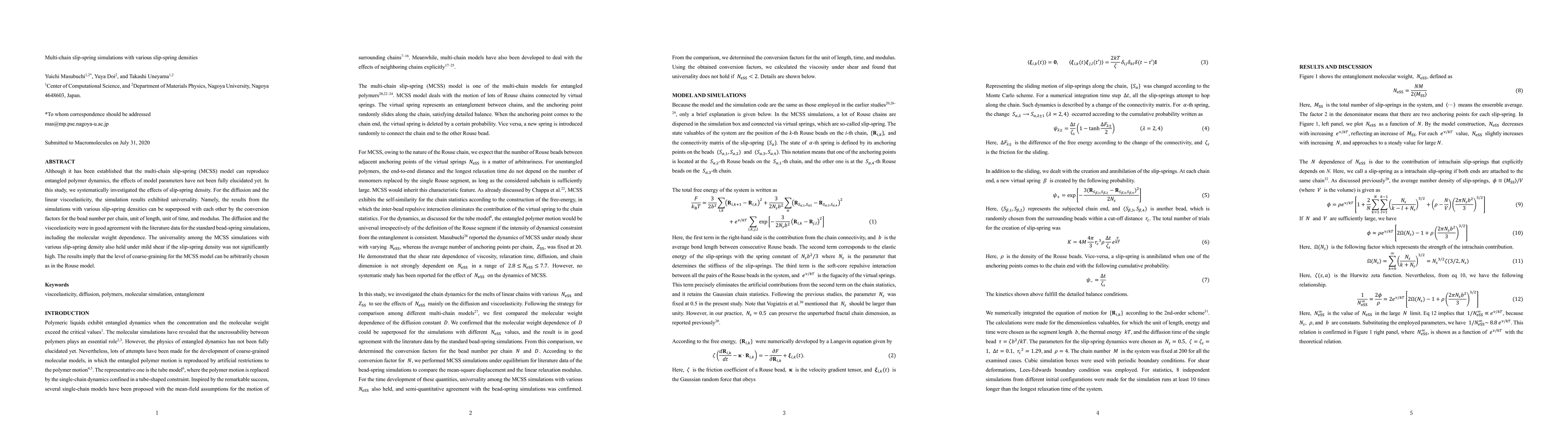 This paper investigates the multi-chain slip-spring (MCSS) model's dynamics under varying slip-spring densities, finding that diffusion and linear viscoelasticity results are universally comparable via conversion factors. The study confirms that the MCSS model's behavior aligns with standard bead-spring simulations, suggesting flexible coarse-graining levels akin to the Rouse model.