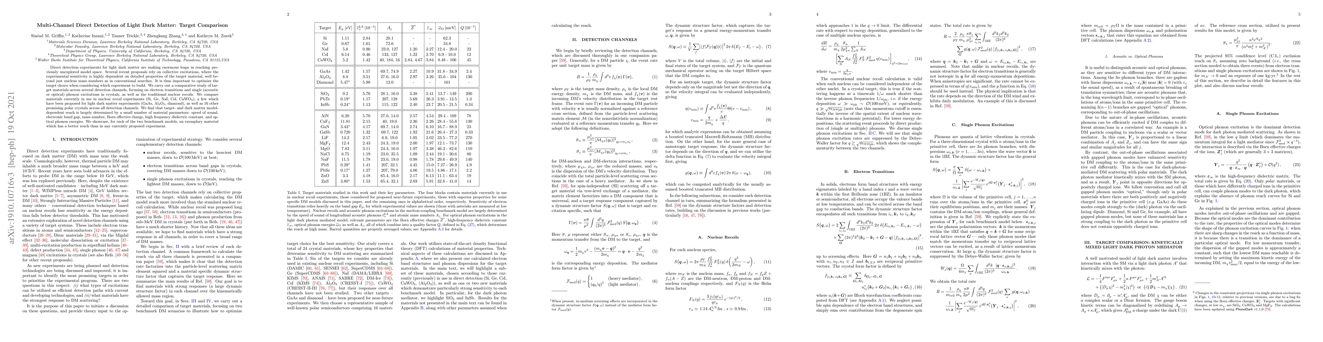 Direct detection experiments for light dark matter are making enormous leaps in reaching previously unexplored model space. Several recent proposals rely on collective excitations, where the experimental sensitivity is highly dependent on detailed properties of the target material, well beyond just nucleus mass numbers as in conventional searches. It is thus important to optimize the target choice when considering which experiment to build. We carry out a comparative study of target materials across several detection channels, focusing on electron transitions and single (acoustic or optical) phonon excitations in crystals, as well as the traditional nuclear recoils. We compare materials currently in use in nuclear recoil experiments (Si, Ge, NaI, CsI, CaWO$_4$), a few which have been proposed for light dark matter experiments (GaAs, Al$_2$O$_3$, diamond), as well as 16 other promising polar crystals across all detection channels. We find that target- and dark matter model-dependent reach is largely determined by a small number of material parameters: speed of sound, electronic band gap, mass number, Born effective charge, high frequency dielectric constant, and optical phonon energies. We showcase, for each of the two benchmark models, an exemplary material which has a better reach than in any currently proposed experiment.