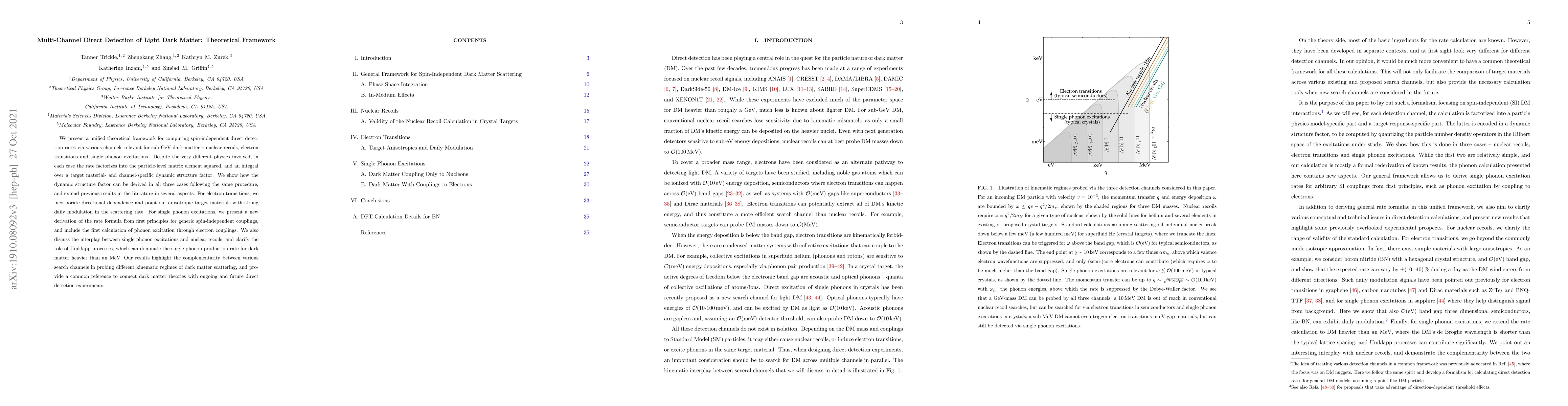 We present a unified theoretical framework for computing spin-independent direct detection rates via various channels relevant for sub-GeV dark matter -- nuclear recoils, electron transitions and single phonon excitations. Despite the very different physics involved, in each case the rate factorizes into the particle-level matrix element squared, and an integral over a target material- and channel-specific dynamic structure factor. We show how the dynamic structure factor can be derived in all three cases following the same procedure, and extend previous results in the literature in several aspects. For electron transitions, we incorporate directional dependence and point out potential daily modulation signals in anisotropic target materials. For single phonon excitations, we present a new derivation of the rate formula from first principles for generic spin-independent couplings, and include the first calculation of phonon excitation through electron couplings. We also discuss the interplay between single phonon excitations and nuclear recoils, and clarify the role of Umklapp processes, which can dominate the single phonon production rate for dark matter heavier than an MeV. Our results highlight the complementarity between various search channels in probing different kinematic regimes of dark matter scattering, and provide a common reference to connect dark matter theories with ongoing and future direct detection experiments.