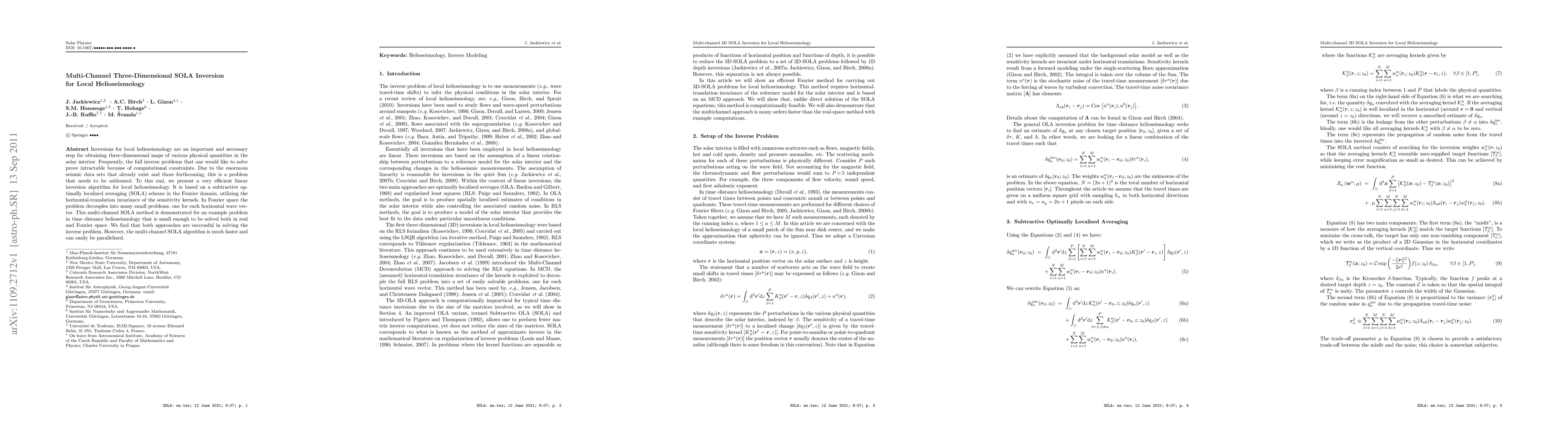 This paper presents an efficient linear inversion algorithm based on a multi-channel SOLA scheme for local helioseismology, demonstrating its speed and parallelizability compared to traditional methods. The method leverages Fourier domain processing to handle large seismic datasets effectively.