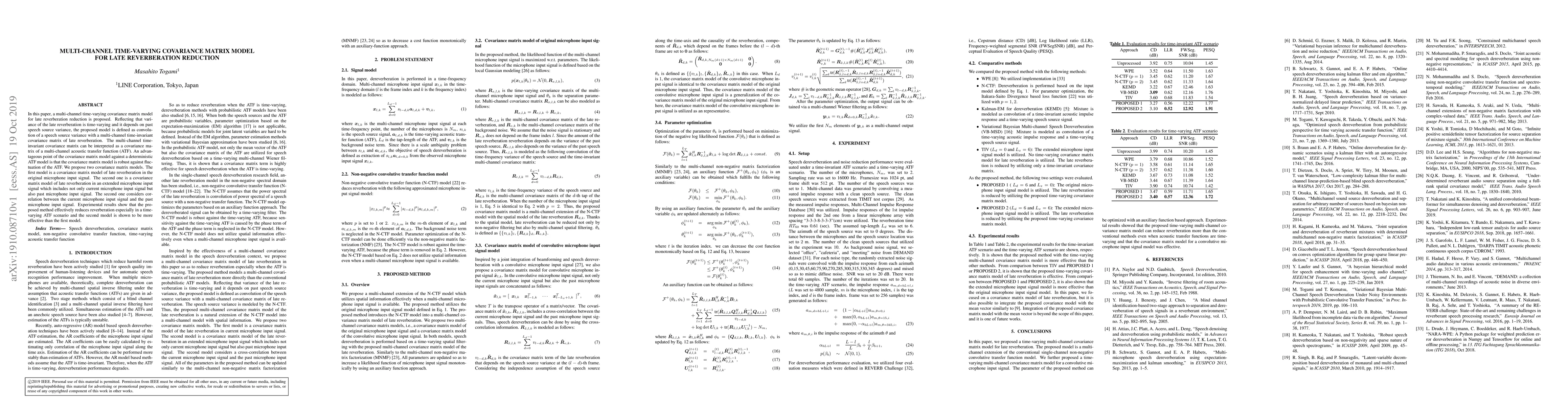 This paper proposes a multi-channel time-varying covariance matrix model for late reverberation reduction, which convolves speech source variance with a multi-channel time-invariant covariance matrix of late reverberation. Experimental results demonstrate its effectiveness, especially the second model that incorporates past microphone input signals.