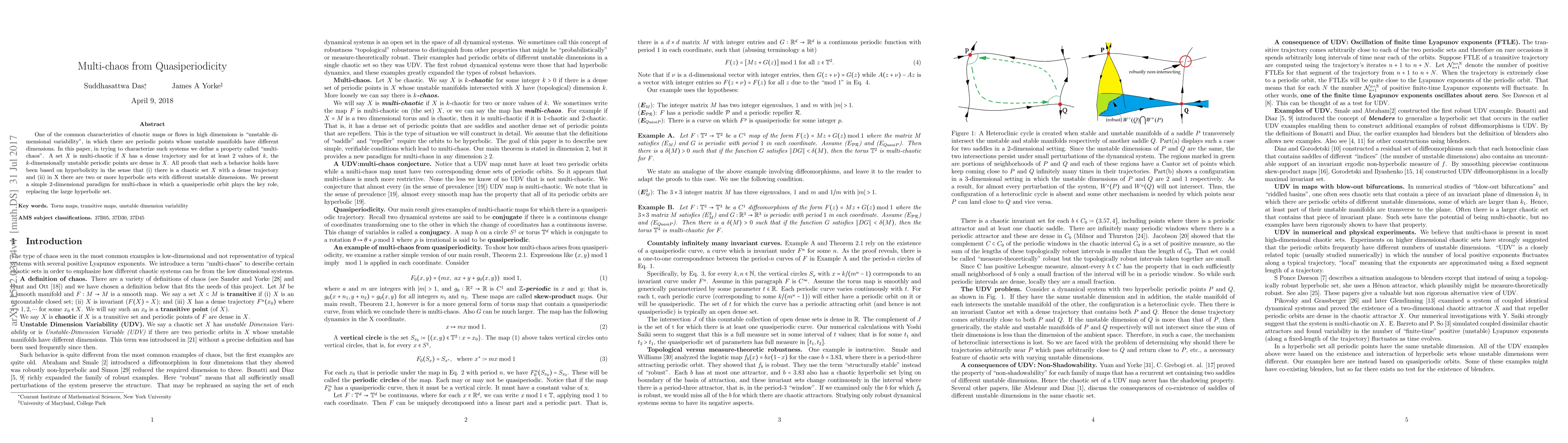 Researchers introduce a new concept called multi-chaos in high-dimensional systems, characterized by quasiperiodic orbits that create dense trajectories with unstable manifolds of different dimensions.