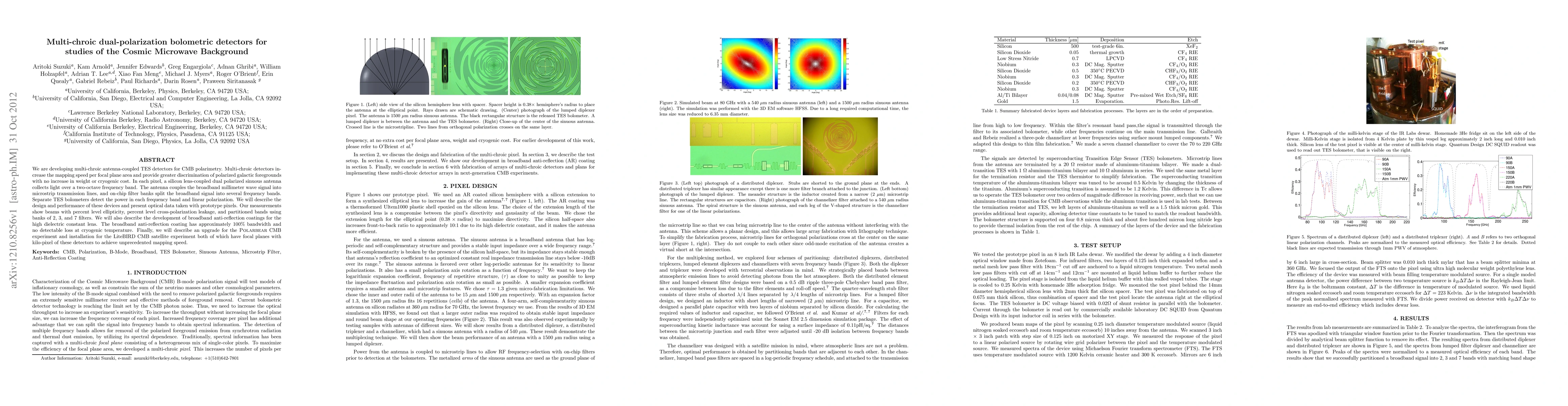 The development of multi-chroic dual-polarization bolometric detectors with on-chip filter banks and broadband anti-reflection coatings for improved CMB polarimetry.
