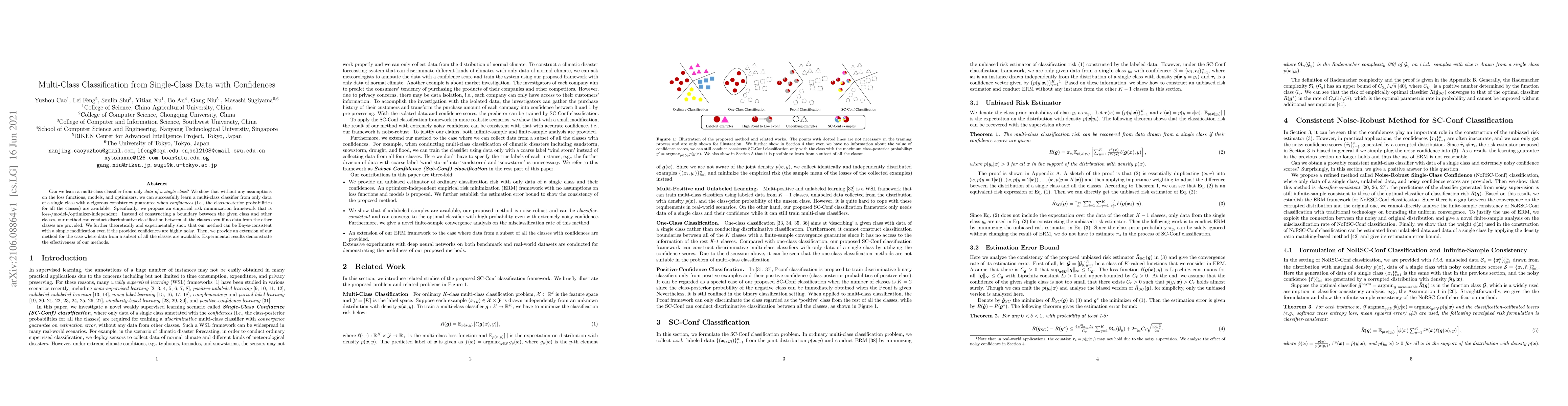 This paper proposes a loss-/model-/optimizer-independent framework for learning a multi-class classifier from single-class data, leveraging available confidences for rigorous consistency. The method can achieve Bayes-consistency even with noisy confidences and extends to scenarios with partial multi-class data.