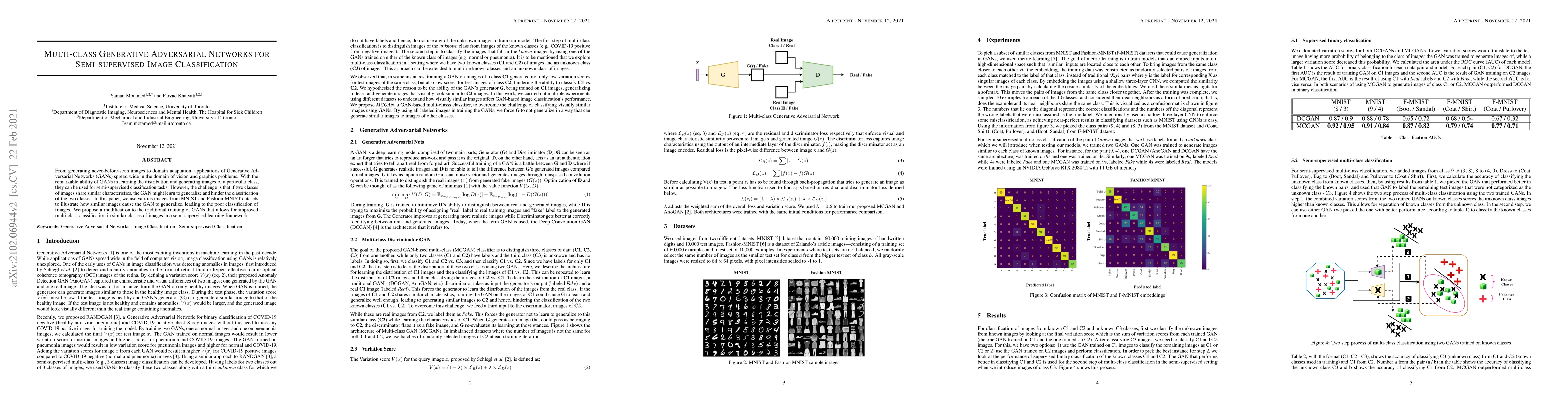 This paper explores the application of Generative Adversarial Networks (GANs) for semi-supervised image classification, addressing the issue of generalization when classes share similar characteristics. It proposes a modified GAN training method to enhance multi-class classification performance on datasets like MNIST and Fashion-MNIST.
