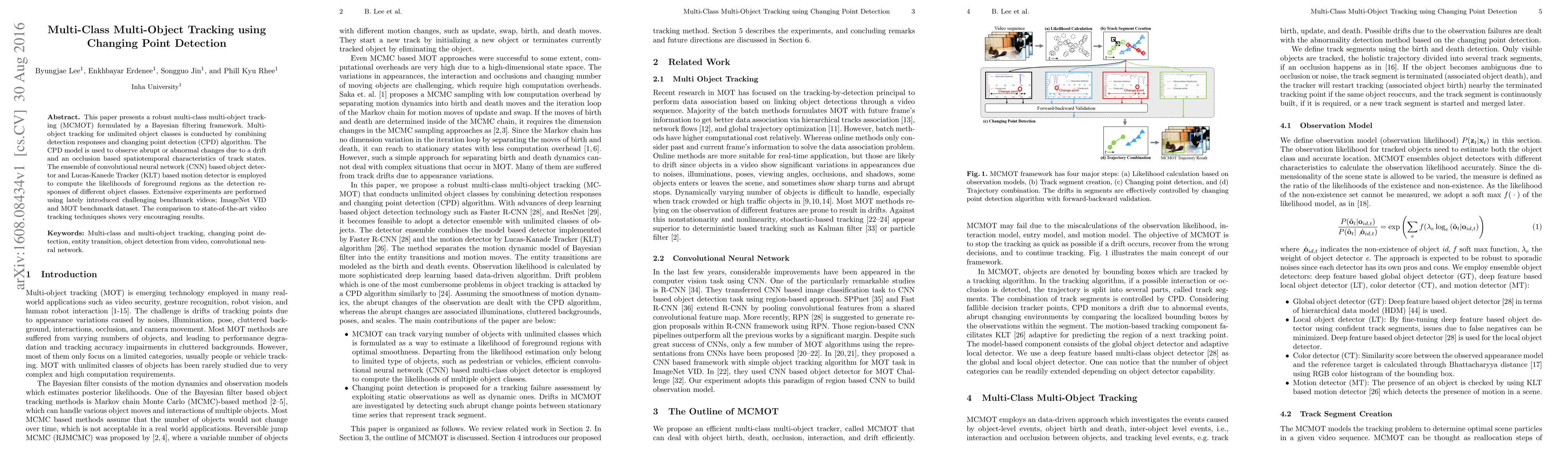 This paper proposes a robust multi-class multi-object tracking system using a Bayesian filtering framework and changing point detection to handle drift and occlusion. It combines CNN-based detection and Lucas-Kanade Tracker for tracking, showing competitive results on ImageNet VID and MOT datasets.