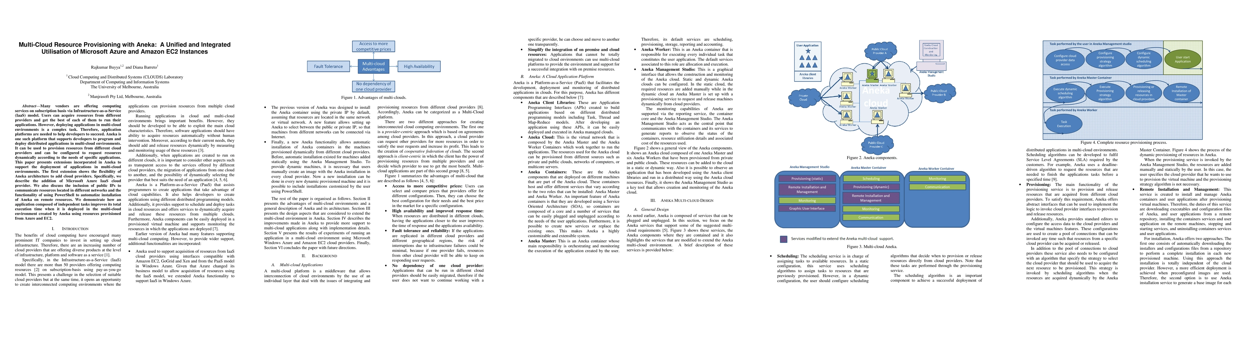 This paper introduces Aneka's extensions to enable multi-cloud resource provisioning by integrating Microsoft Azure and Amazon EC2, showcasing improved application execution times in a multi-cloud setup. It highlights the flexibility of Aneka's architecture to incorporate additional cloud providers and automates resource management.
