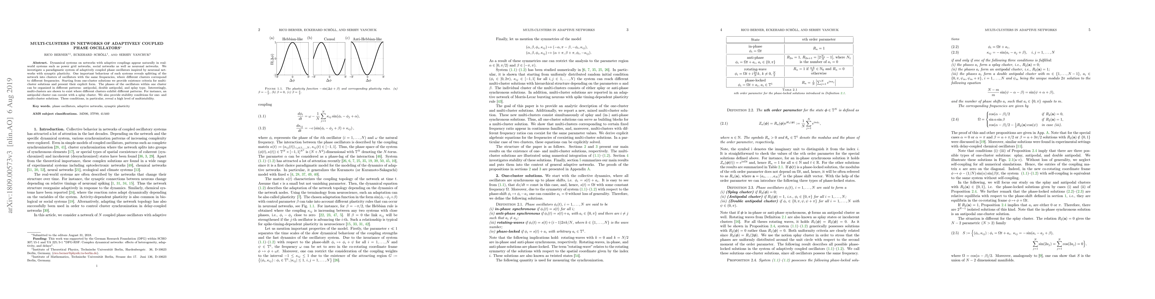 Research investigates multi-clusters in networks of adaptively coupled phase oscillators, revealing existence criteria and stability conditions for different cluster patterns and high levels of multistability.