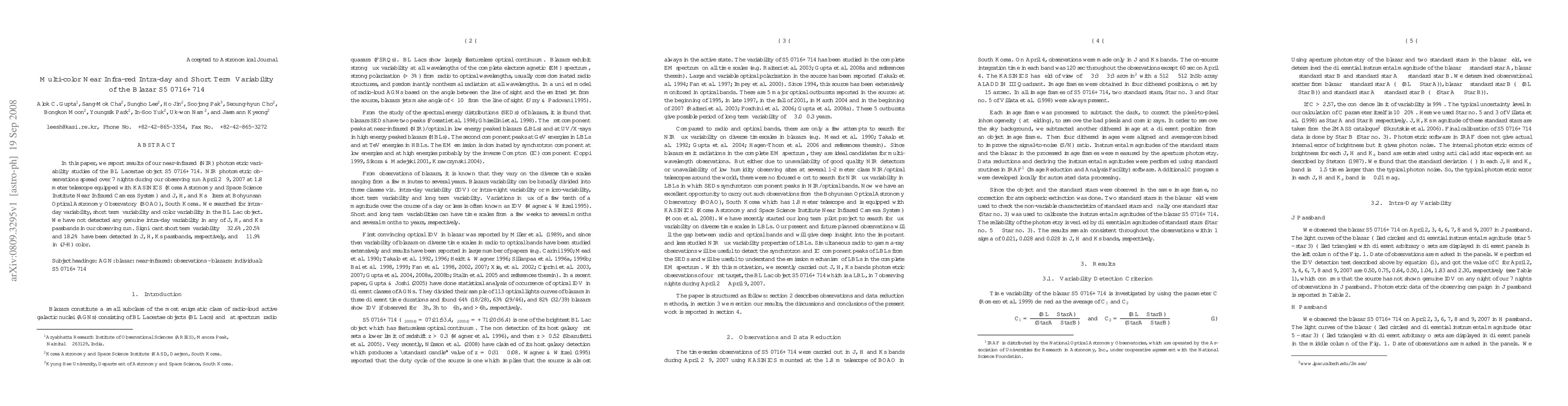 Researchers studied the variability of blazar S5 0716+714 using near-infrared observations and found significant short-term variability in some filters, but no intra-day variability.